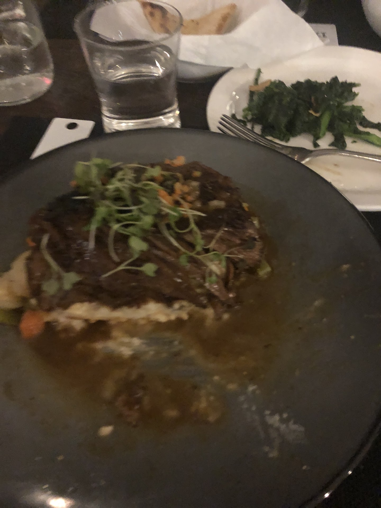 Food: steak: was surprised by the order of fries for the side considering the price of 38 and the steak size was a bit underwhelming(around 6 to 8 ounces). Tasted great though! Fries very well seasoned. The best part of the steak(other than taste) was that it aged well over time: Lots of restaurants get this wrong! Stayed fresh and didn't feel overwhelming at the end but stayed filling. The appetizer bread was great! After 20 minutes, did get a bit soft. No harm considering this would most likely be eaten by multiple people in around 5 minutes.