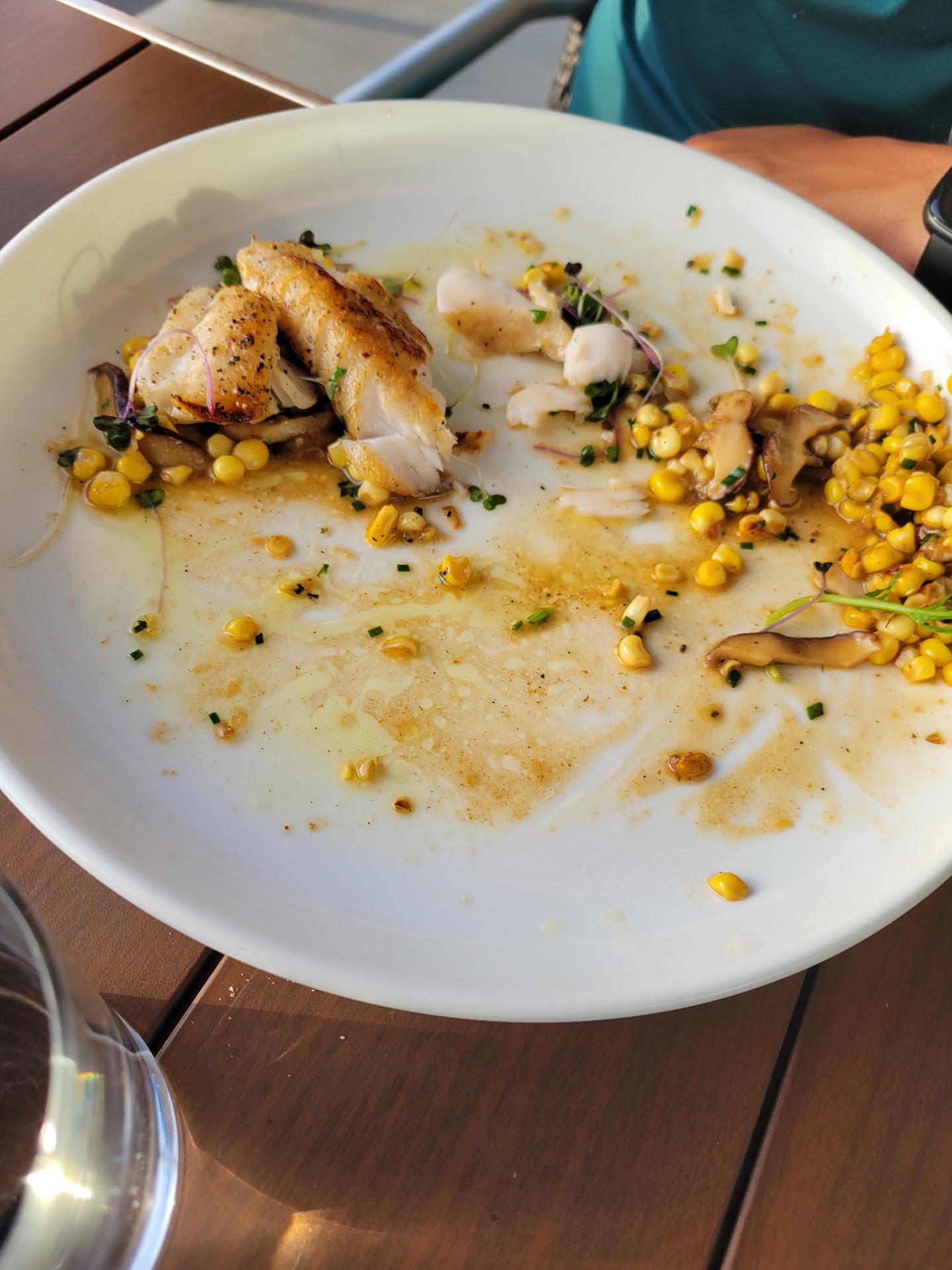 We started with drinks and the charcuterie board. I highly recommend this as it was plentiful and varied with cheeses, fruits, meats, olives, etc. Very tasty. The bread was a rosemary seasoned pita-like bread that was warm and quite delicious. We also had shrimp sticks which are fried spring rolls with a sauce that is to die for!