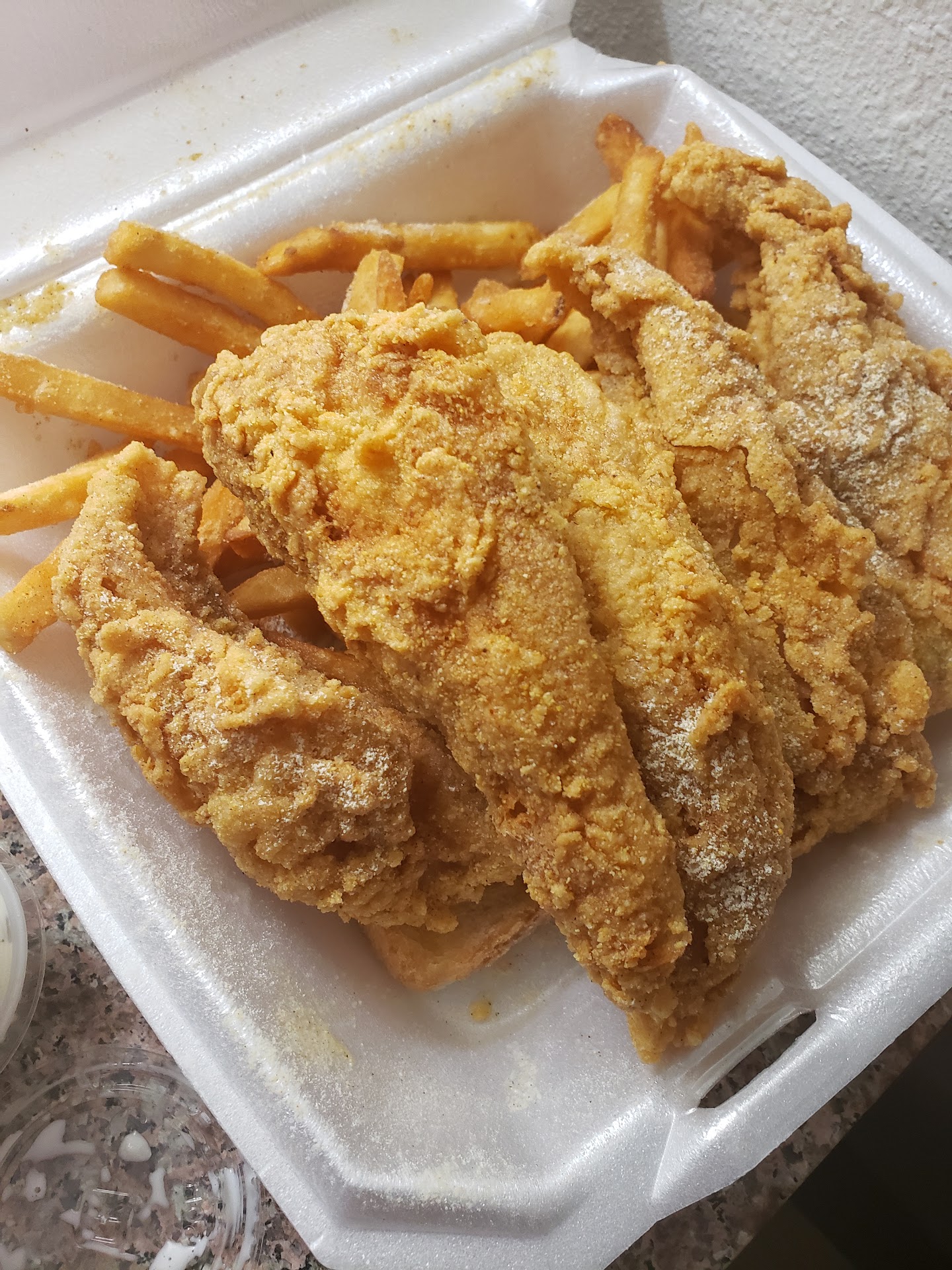 Food: I ordered the 2pc Catfish Filet and 3pc Perch. This came with fries, bread, and coleslaw (although I never got the slaw). The best thing about this place is everything is cooked to order. So, the wait time was about 30+ mins or so but the food was exceptionally hot. Ideally, you wouldn't eat there but by the time you get home your food would be the ideal temperature. The batter and breading on this fish was very tasty. Also, the cuts of fish were thick, white, and flaky. Very impressed by the portion to price ratio.