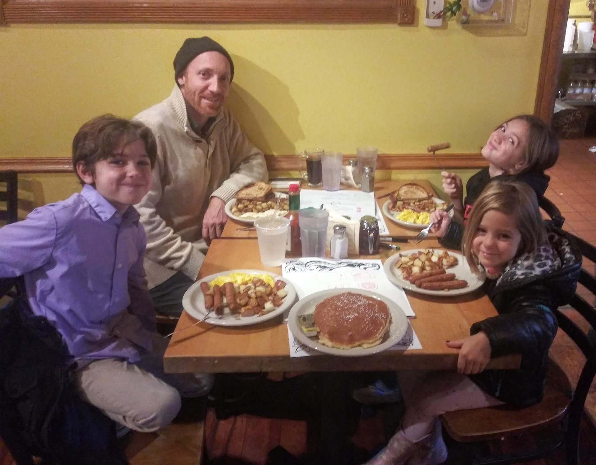 Our son was just returning from the bathroom with our grandaughter, and I let the host know that we weren't just sitting talking but waiting for their return so she could finish eating her pancakes. I was very disappointed at the fact we WERE being rushed out. And further disappointed at seeing the host discuss the exchange with several other staff members as they looked over at our table.