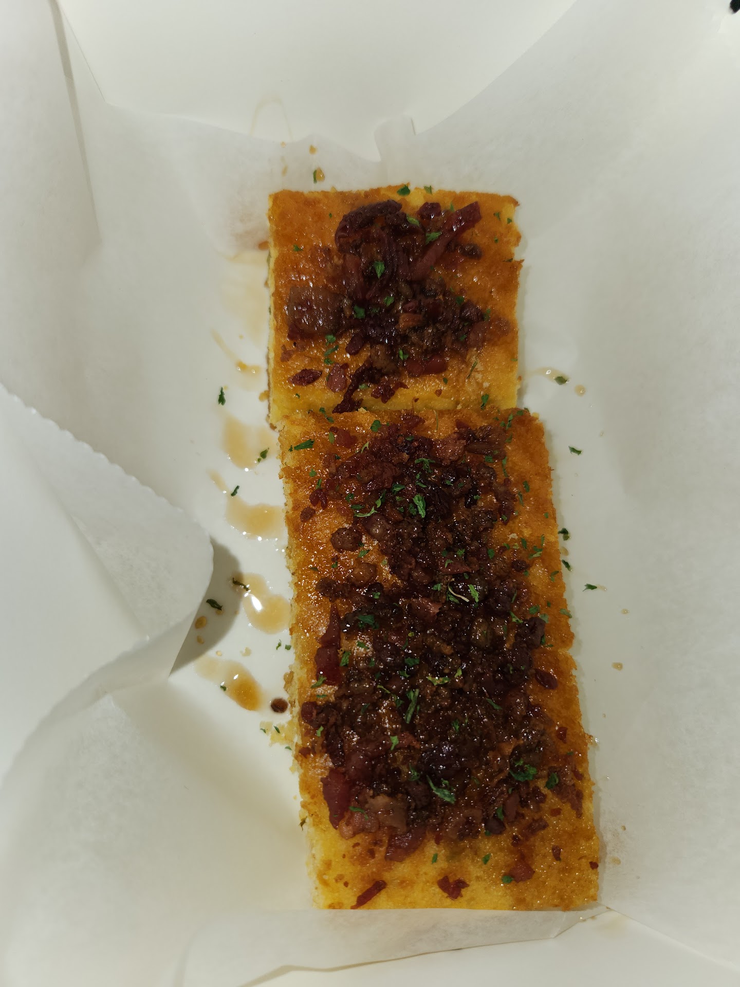 The food⊠oh my god! My partner and I shared the collard green salad and both varieties of cornbread they have (lemon blueberry and maple bacon jalapeño). By the time we were done, I had half a mind to order some to go.