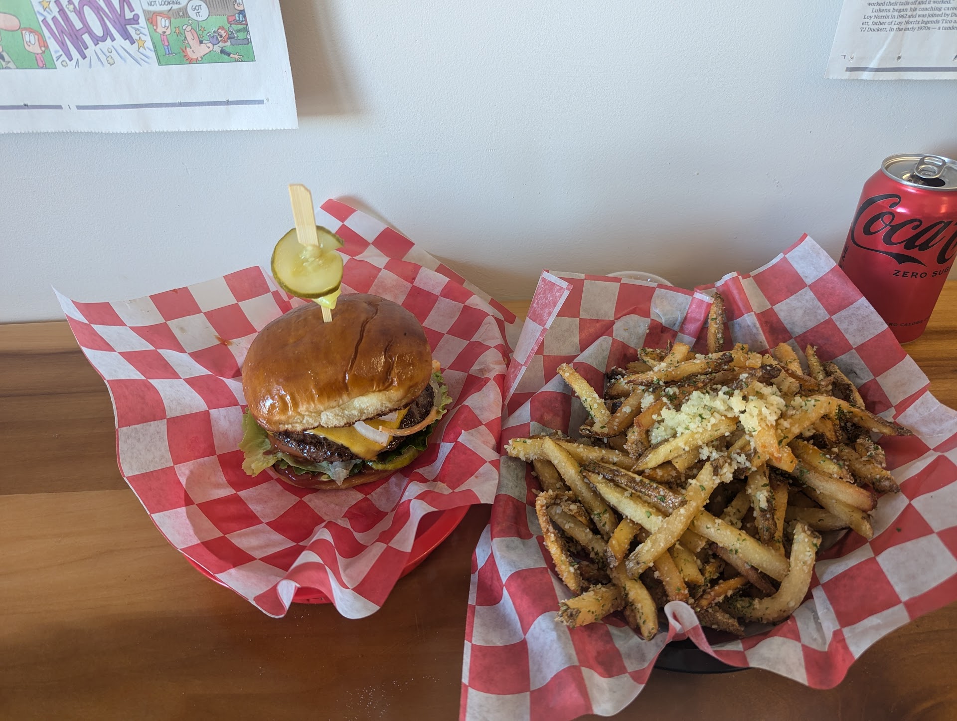 Read moreLOVE THIS PLACE!!!! Food has always been hot and the girls working the register are friendly. The first time my BF and I stopped in on a whim and shared a Chicken Sandwich (this was huge and juicy but not a lot of flavor/seasoning), a Lake Bacon Burger & a parmesan truffle fry. OHMYWORD that burger was so juicy and the fries were so flavorful. Delicious! Made us go back the next night! We called for takeout and it was hot and ready when we got there - we added a strawberry shake to our original order. YUM again! 3rd time my fellow work employees wanted to try so I called at 11:20 and was informed they are no longer taking orders via phone. Hmfph. I drove there and placed the order for 5 burgers (3 double Lake burgers, 2 Lake bacon cheeseburgers) and 4 fries (3 original which are with just sea salt, and one crab which is coated with Old Bay seasoning). Order was ready in 13 minutes and only 1 was wrong (person wanted only mustard and though it was on the receipt as such, there was ketchup added). Most enjoyed the burger though they weren't as impressed with the fries which today, seemed to be a bit soggy and limp. I'm a fan. Ran into my favorite local foodie Otto P Beagle there upon pickup today. If Otto likes it, it's a for...