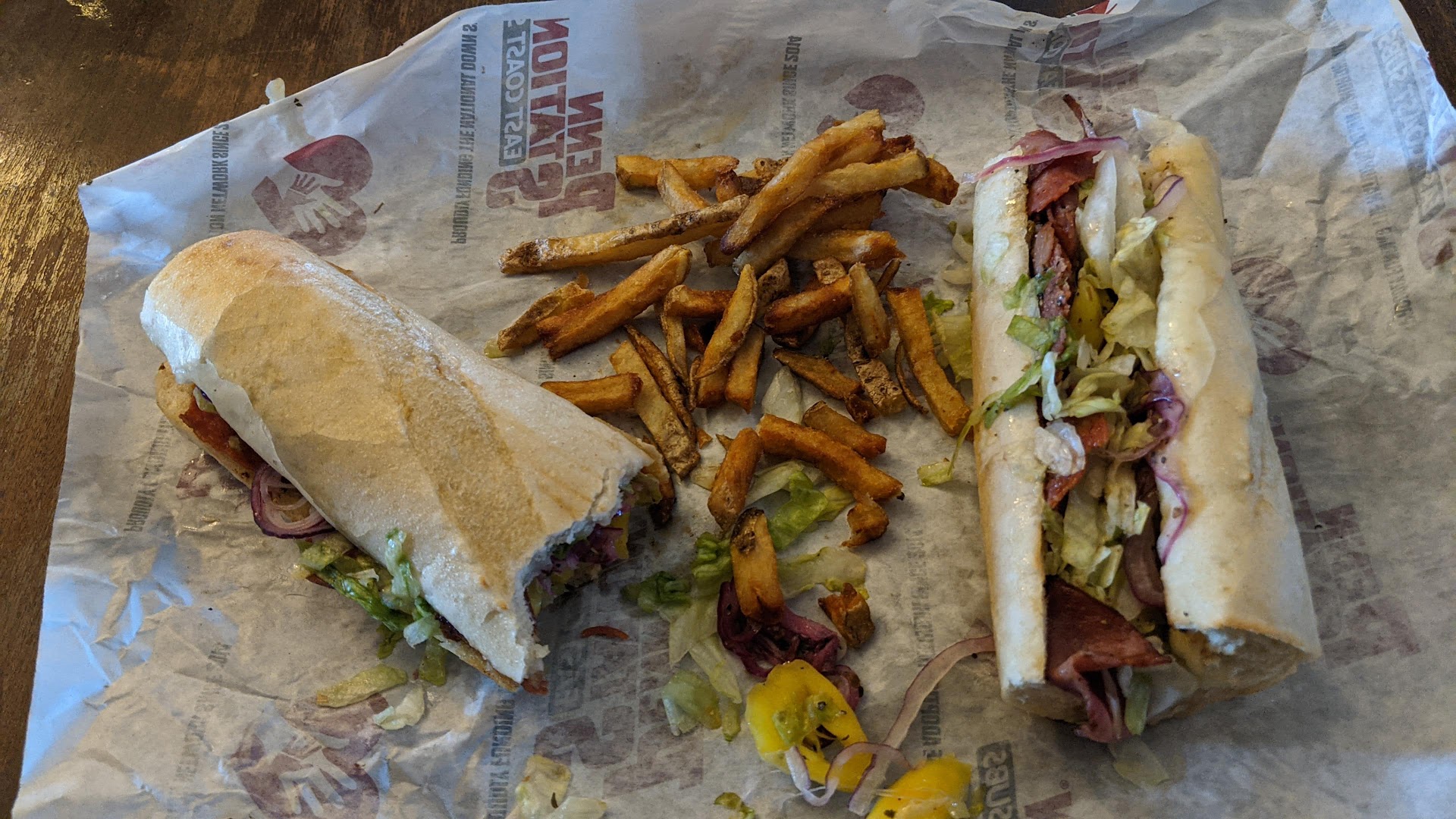 Read more1st time there, Ordered 2 sandwiches. 1 large 1 regular. 2 fries. 1 large 1 regular, a cookie and 1 large fountain drink. Total came to $42.57. The staff was so nice and friendly I had them keep the change from a $50. We were the only customers there. We waited approximately 10 minutes for our food. During our wait I used the restroom and the restroom was disgusting. We received our food bagged up and left. NEVER LEAVE WITHOUT CHECKING YOUR ORDER !!! We ended up with the 2 great tasting sandwiches that we ordered, 1 very good regular sized fry. Did not get the large fry, did not get the cookie. The fruit punch fountain drink was quite tasty too. Not likely I...