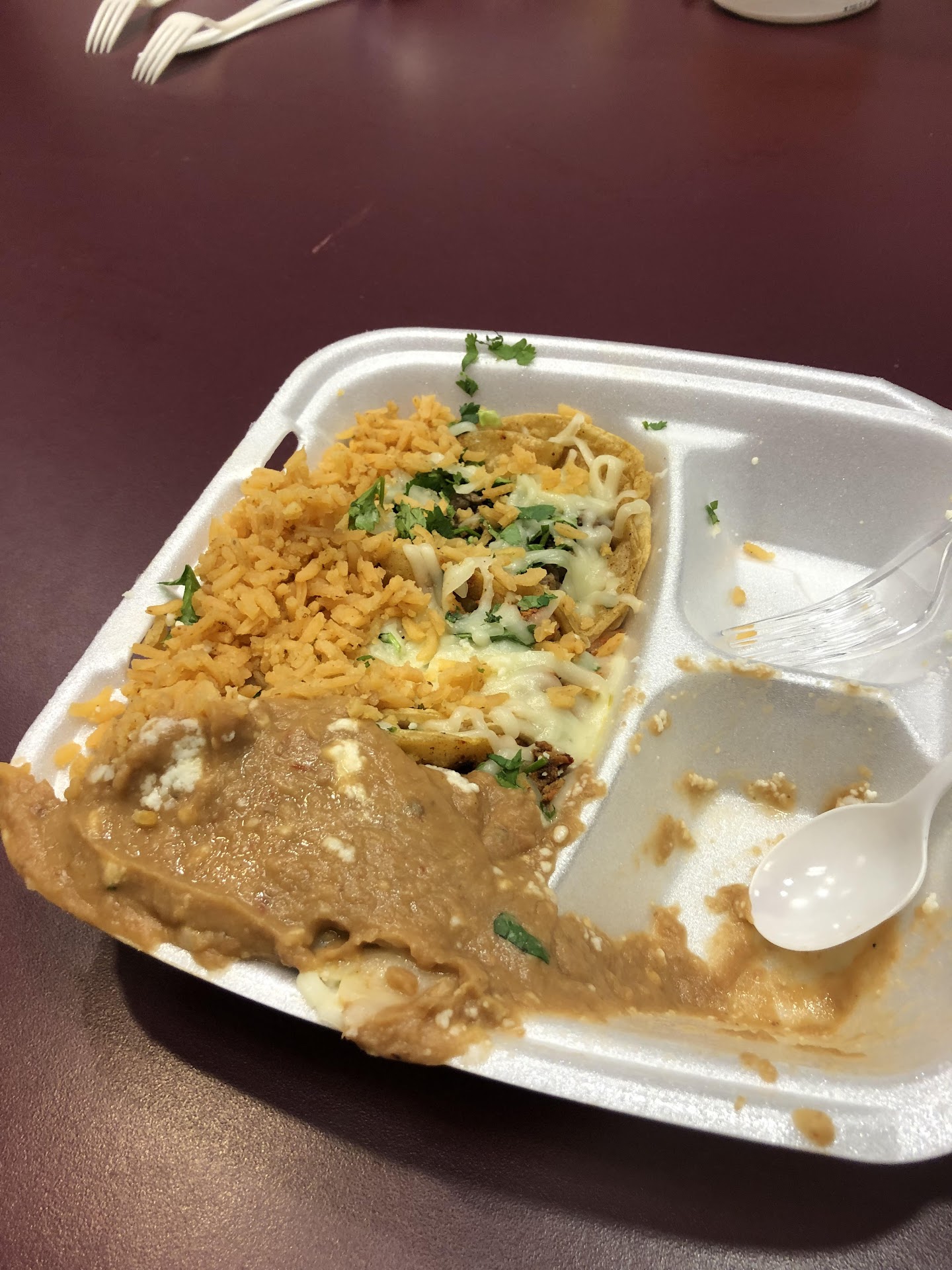 Read moreFirst time customer, My colleague missed half his order and when I went to sit to enjoy mine this is what I opened for my taco combo #1, I held the packages on my lap on the car ride to even avoid this ironically. I called and spoke on behalf of the missing items for half the order and the execution of my food. The lady asked to send a text to consider compensation. I submitted the following photo and there was no reply, I called the next day asking for a refund once confirming who I was with the photo, the lady offered a meal compensation, fine, I gave her my info. Nearly a month later I stop in and the older gentleman (owner) went to take my order and I gave my info for the comp meal. Couldn't find it in the system, then stopped and stared at me to say "you're not honest" and accused me of being a dishonest customer when I showed him the photo. He completed disregarded the missing items and proceeded to say that I did that intentionally and causing quite a scene in front of other customers. I was comped for 1 of the 2 meals I paid for in cash being told to go. I certainly will never give another dollar to this terrible restaurant managed by 2 clowns. There are much better choices 1. Down the road is called Los Brothers and another Mexican restaurant off portage road called Garcia's Kitchen. Give those folks your business for better food, not...