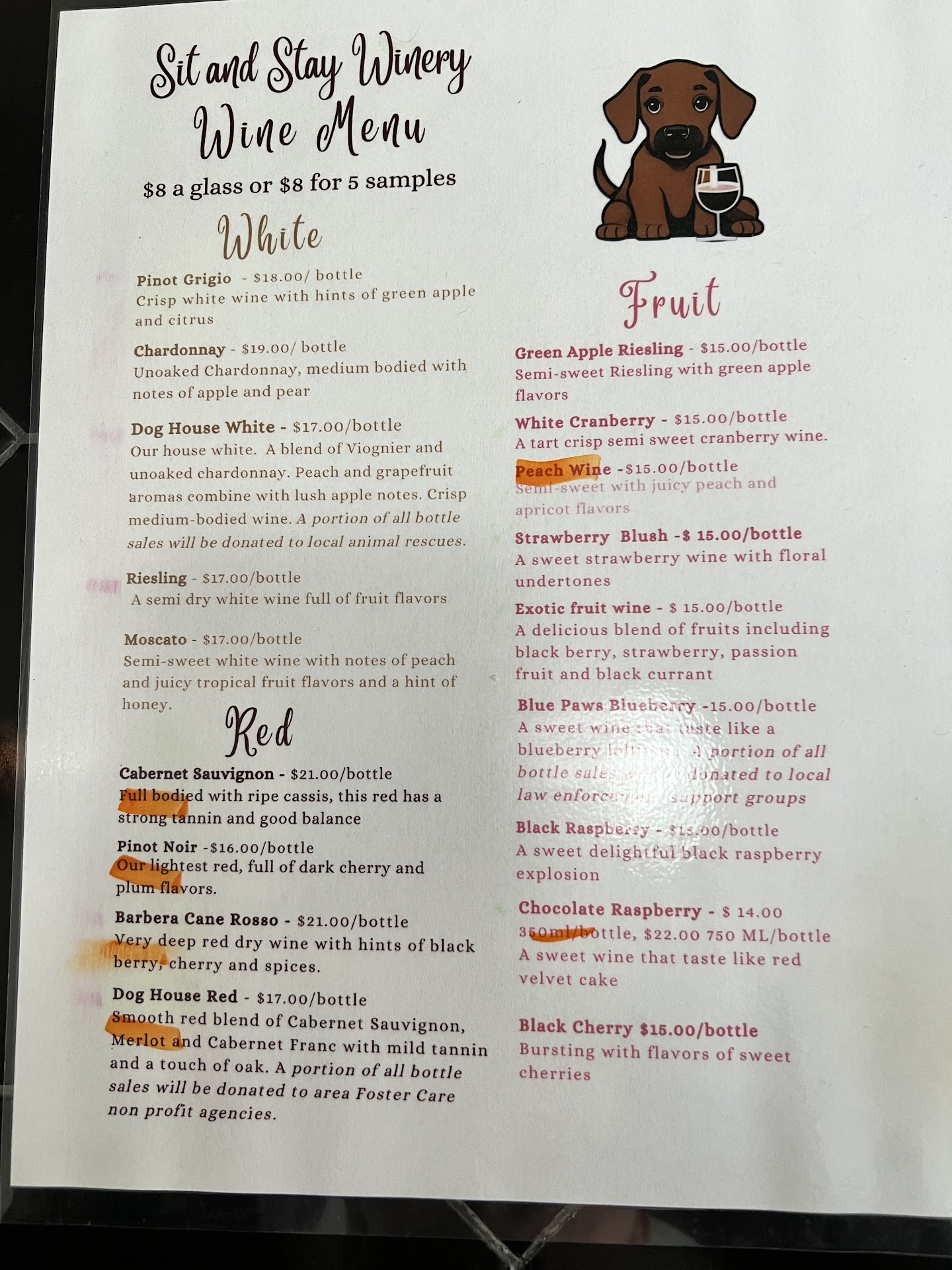Read moreDelicious wines, and very cute samplers served on a dog bone platter! For a fellow dog lover myself this made the experience even better than a normal wine tasting. My favorite wine was the black raspberry! Great live music and wonderful atmosphere. Our charcuterie board was delicious! Wonderful customer service, and of course I left with some cute merch. Highly recommend! I will be back this summer with...