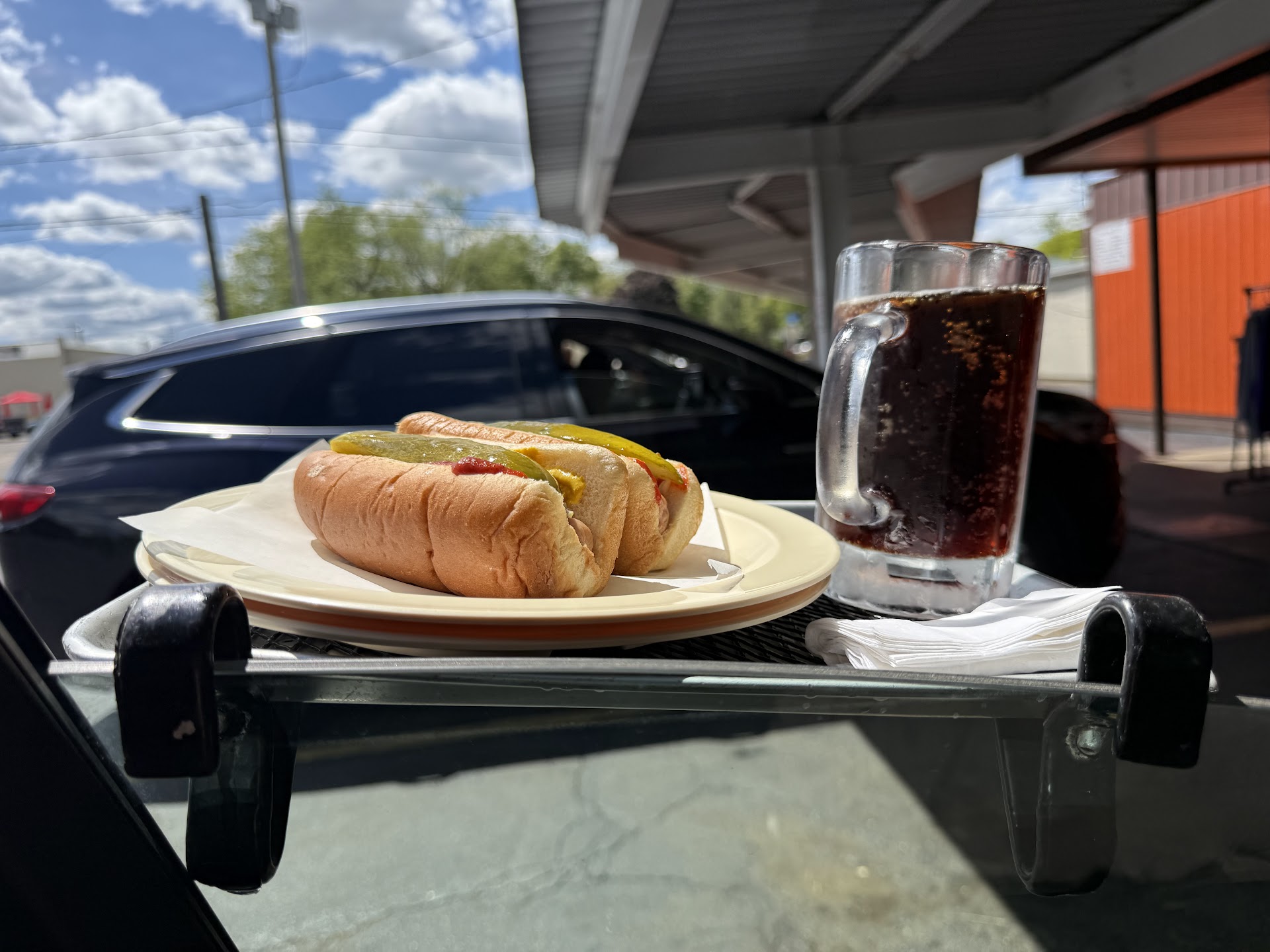 Read moreThere are moments in the new world where it’s easy to contemplate the real value of a dollar. You pop into a corner shop, buy a chocolate bar and it costs you $2.50. So a dollar is worth 40% of a chocolate bar. Then you go to an antiques market and the entry price is $15. So a dollar is worth 6.7% of an hour in a hot parking lot. Then you go to somewhere like The Root Beer Stand, and you get 2 hot dogs (lovingly topped with homemade chilli, mustard, onions and a pickle spear) and a home brewed root beer for $9. So a dollar is worth 11.1% of a full stomach, nostalgia for a time you didn’t live through, satiated tastebuds, refreshment, great service, charm, convenience and a great memory of a Sunday afternoon. (Also they have those cool trays that hang on your window (pictured)). Amazing experience TRBS,...