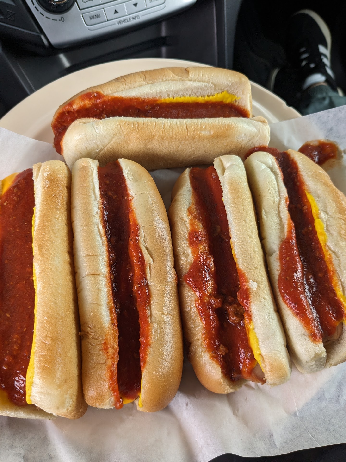 The hot dogs are the most low-quality meat and bun you could get. Think Bar-S on Wonderbread. The "chili" tastes like thick, spiced ketchup. There is NO meat in it. The "cheese" is basically jarred cheese whiz. It's frankly appalling. The "ham sandwich" is... you guessed it: think Armour ham on the most bland white bread you can find.