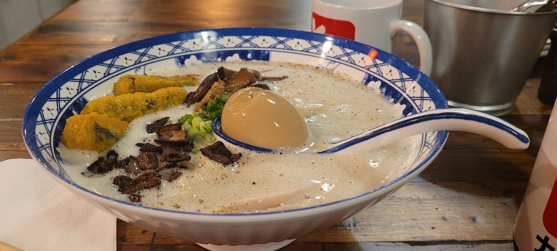 I ordered the Toba ramen which is their house broth with chashu pork and soft boiled egg. The broth is ACE, 10/10! It is easily the shining jewel here. It is creamy, frothy and flavorful. The softboiled egg was also perfect and had the correct umami flavor from a soy-based marinade. The pork, mushrooms, scallions, etc were all great as well. These were the things Toba gets right. The one flavor that I found strange and did not enjoy was caramelized onion. It's very sweet and a shocking change of gears from the salty, umami flavors. There were also a couple things missing that could really give it that authentic touch which is seaweed and narutomaki (fish cake). The last thing to talk about is the noodles. Noodles are the hardest part to get right, because you either need to make them onsite or order them refrigerated from like Chicago or maybe Detroit. The noodles are obviously dry packaged and thus not very flavorful. I can see why a lot of r ramen restaurants do this, because wet or fresh noodles are very expensive, but it's just not authentic ramen without it. I would pay a few extra dollars per bowl for fresh noodles.