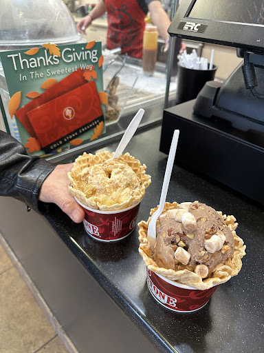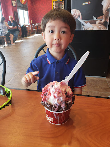 Great atmosphere and a good place to spend 30 or so minutes with my wife and 3 year old son. Minor complaint the fan/generator kept going off which my son kept saying "heard a noise?" The ice cream flavors of choice were delicious. My wife and son had berry berry which had blueberries, strawberries and raspberries on it. I went with cookie dough and chocolate chips overall very delicious. They have a specific way of mixing it up that blends the flavors together. I have included pictures of the menu, sizes available, and flavors on display. The pricing is slightly higher than one would normally want to have but its well worth it. If you are looking to have 30 minutes to an hour with your family or a date which is more preferable, I recommend Coldstone on a hot summer...