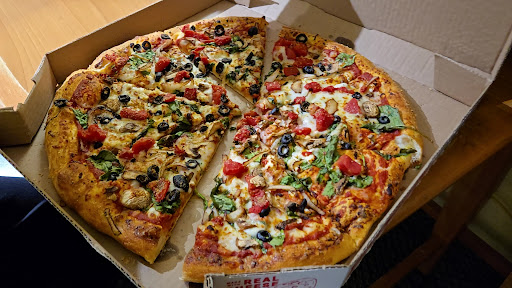 Worst experience in 5 years. Pizza dough was under cooked. Took 30 to 40 min after we placed an online order for it to be put in to bake. Took another 20 min after it said it was ready as we waited in the drive through pickup area for 16 min and even though the employee were at the register and then back to cook, no one ever looked towards tge pick up window. So we went, parked and went in to get the order. The guy working came up asked using we'd like to order and proceeded to try to tell us about the best deal. I said we'd just like to pick up our order that we waited 16 min at the pickup window for. He said oh well we don't have enough staff to take care of everything, then showed us this gift card wrapper for dominos and was mumbling something about it. I said, I'd just like to pick up our pizza's. He looked confused, finally asked my name. I asked for plates, he said they didn't have any and had been out since last week. We got our pizza home, and proceeded to eat, when we realized the center of the pizza was not fully cooked. It was gooey dough. We had pan pizza's, so I assume it's a new cook and doesn't realized the pans take a bit longer. There were several people waiting on food, not sure how long they'd been there. I woukd just personally order in store and just ask them how long...