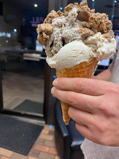 Ice cream is really light and fluffy. Not heavy at all. The flavors are pretty traditional. Have a few other items like baked cookies as well. We ended up getting salted caramel, cookies with milk, and a cinnamon snickerdoodle with Reeseās peanut butter topping. The portions are extremely large one scoop is the size of two. It was impossible to eat the ice cream on the cone without putting half of it in a cup.
