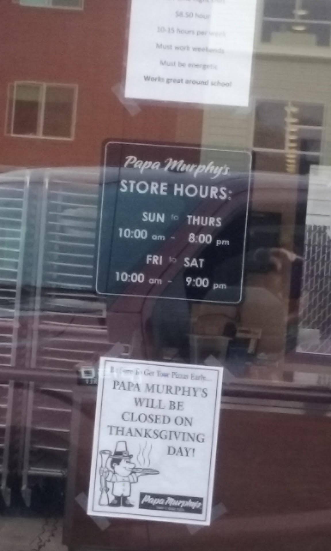 Read moreLove papa murpheys, not thrilled with the staff asking for tips when using a credit card. The last 5 or 6 times they say " it's giving an option for a 10 % 12% or 15% tip." I don't know if it is the phrasing or what, but a server should not ask for a tip EVER. A tip shows you have gone above and beyond your job and ia awarded according to the servers disposition. Asking for a tip is an automatic no for me. I have been using papa murpheys for over 10 years as a local and it really leaves a bad impression on the business. The pizza is good, always have to ask for extra cheese and get an extra charge so wish they would have a little more on their toppings especially with a plain...