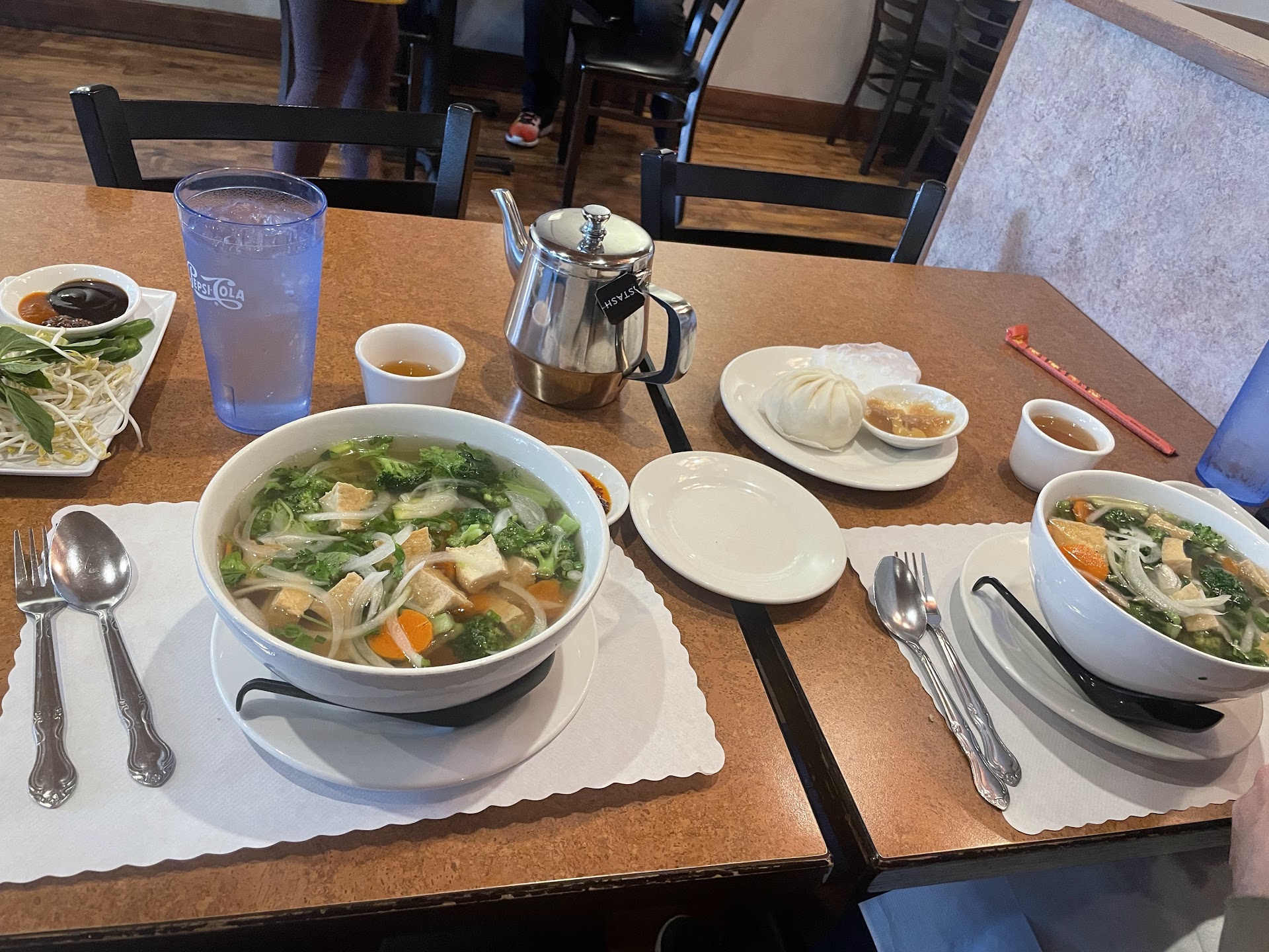Read moreWe visited Pho 888 during our trip to Kalispell, Montana while visiting Glacier National Park. We arrived around 1:30 PM and found it to be quite empty with only a few people. The hosts were friendly and helpful, providing us with all the information we needed and offering suggestions. They were accommodating with our orders. We tried the vegetarian egg rolls, which were decent, similar to fried rolls. The bao bun with pork was good, but had a lot of dough compared to the filling. We also ordered two sizes of veggie and tofu pho. The broth was a bit bland, but had plenty of vegetables, so it wasn't too bad. Overall, the food was decent, but the hospitality...