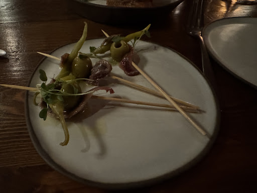 Read moreBeautiful space, great ambiance. Incredible service.... not a great meal. Really wanted to love it, and looked forward to trying it. But from start to finish, the flavors and cooking techniques were mostly misses. Cocktails: intensely sweet, and they didn't have ingredients for a whiskey sour. Didn't have suggestions for anything similar either, until I prompted for something with lemon and bourbon - and I got lemon, bourbon, and maybe some water mixed in? Very odd. Patatas bravas: starchy potatoes. One or two were well cooked, but all cut different sizes so uneven. Very little flavor, and very little sauce. Olives: the flavor of the oil was very nice, but it was just a bowl of olives, with seasonings that caught in our throats when eating. Crab bisque: great soup base flavor (good depth), and crab was cooked well, but the flavors didn't mesh well. Overall this was our favorite. Pork belly & polenta: big slab of pork belly, all around the edge was severely overcooked (meat was splintery), and very little flavor. Polenta flavor was decent. Good seasonings. Dessert coffee drink: very very very sweet, and flavor was just like a super sweet drip coffee with baileys (for $16 in a tiny glass) Blood orange custard: custard was grainy, and the blood orange was nice but served as a whole slice. We had to remove it, cut it up, then pair it back with the custard. Not impressive or easy to eat.