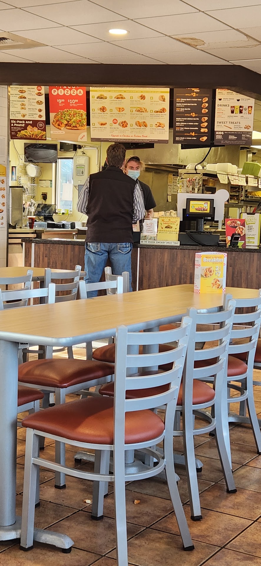I was there 5/11/24 around 9pm. There was a couple seated and no one in line inside (not sure how busy the takeout line was). My husband placed our order and we sat down. It was 18 minutes later that we were served our food. The food was missing a large potato Ole. I went back up to get it, but the three young boys were swamped with orders. Disorganized kitchen with trash all over the floor including wrappers and potato oles. I waited for 4 minutes for someone to come and approach me. The gentleman apologized and served me promptly.