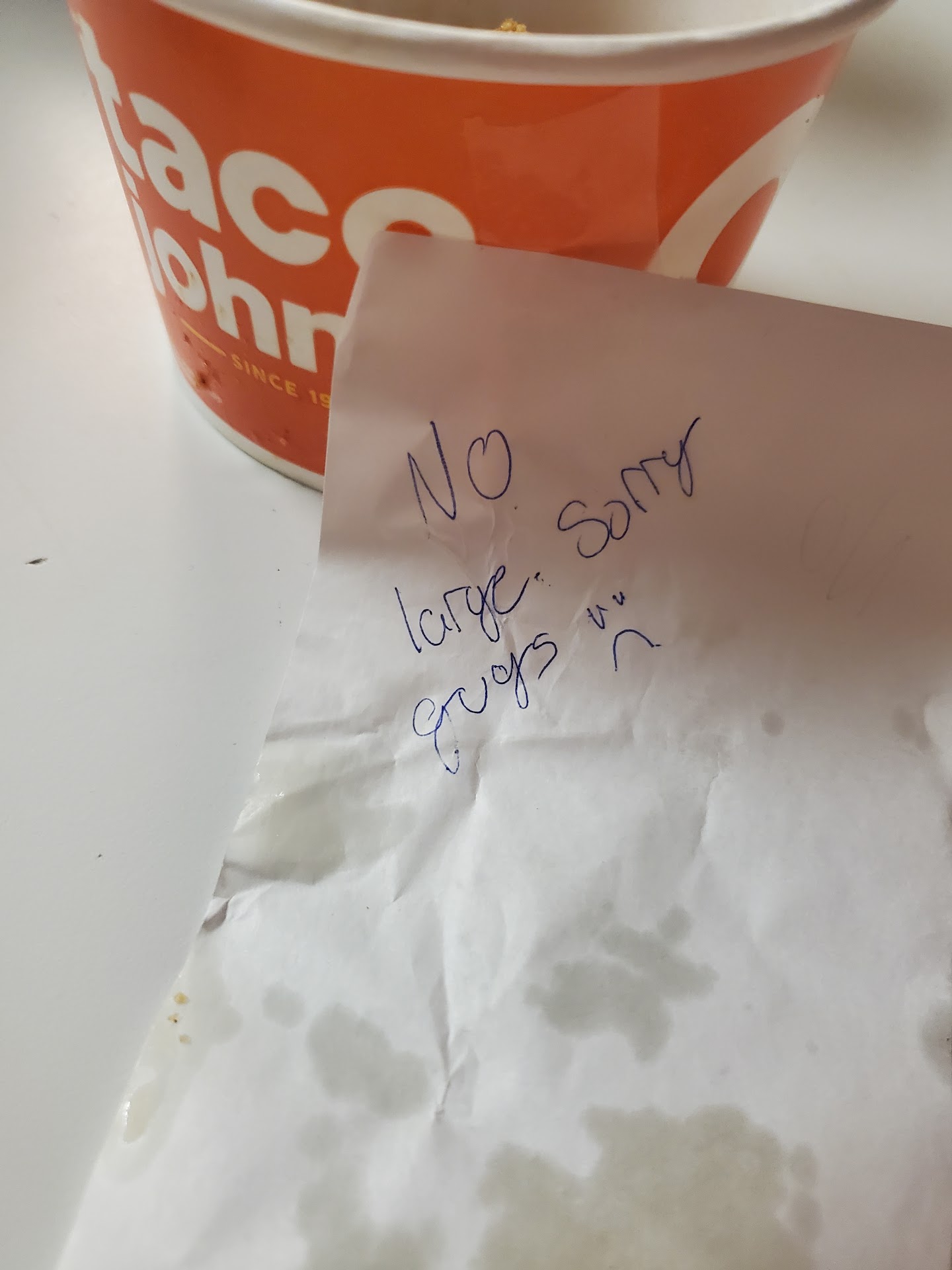 Read moreOk so I usually don’t post reviews Iam former taco johns of kalispell GM and later came back when they brought TJ back to Kalispell I was then just Supervisor… I left for medical reasons but I recently placed an order in drive thru order #1#2 two crunchy chicken and potatoes burritos and steak quesadilla and two super potato oles and once we arrived at the window the young gentleman was rude argumentative and had zero cares the other crew were in heated argument cursing and yelling zero cares to detail they closed there drive thru down 3 hrs early and argued with me about the meat and potatoes burritos that grill chicken was what went in them I said no there crunchy chicken it comes with tomato lettuce potatoes and nacho cheese sour cream ! What I got was disgusting grilled chicken smothered in mild sauce and onions and cheddar cheese . The number two is supreme burrito comes with bean taco meat mild sauce lettuce tomato sour cream olives and cheddar cheese what we got was smothered bean burrito ! Super oles we’re a mess and because they closed drive thru and Lobby was unable to get my meal fixed 51$ down the drain very upset with the quality of service and the crew training!!! One star...