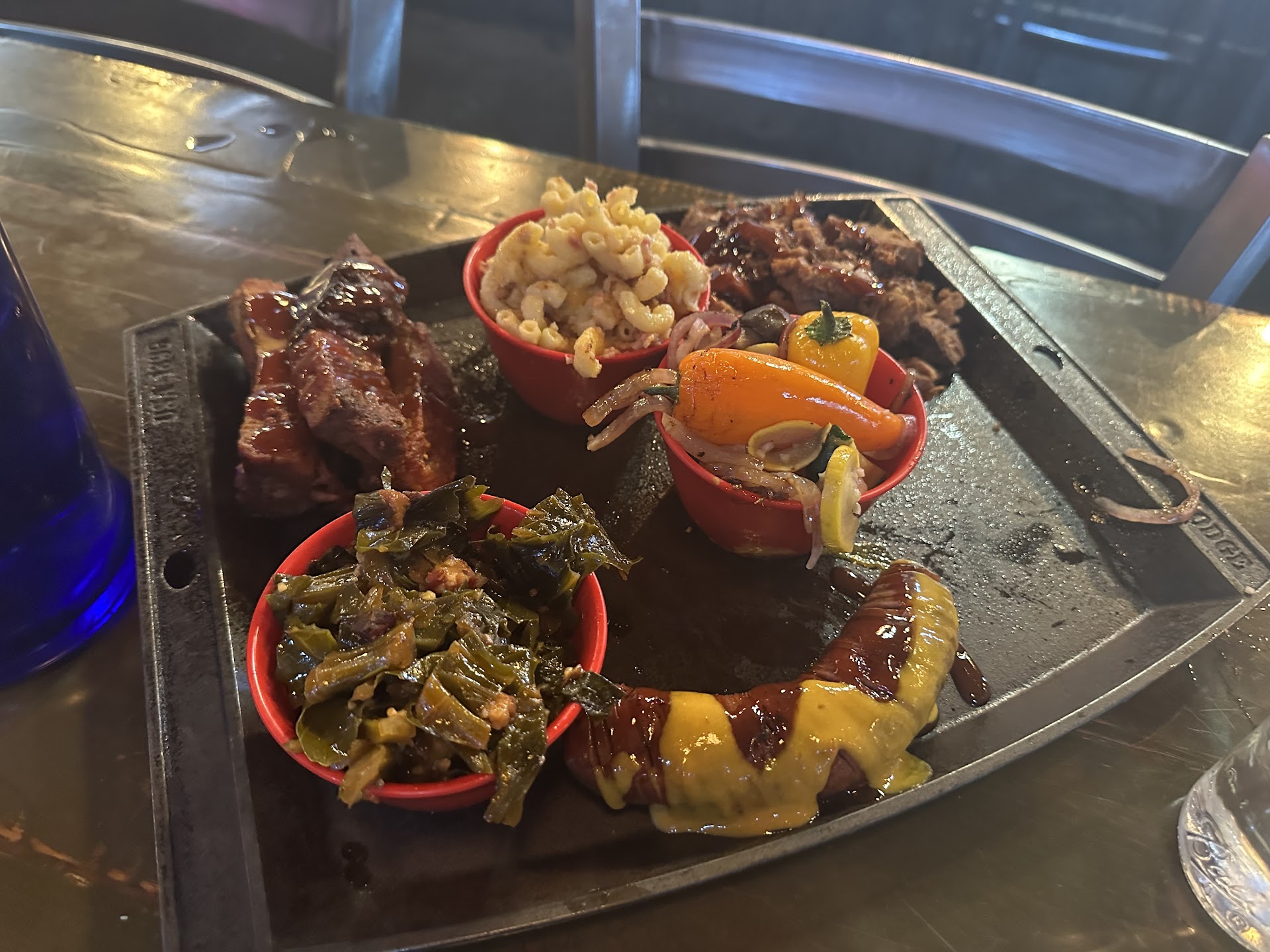 Read moreAbsolutely terrible. We waited roughly 30 minutes for a table, and the people who walked in right before we were sat were getting their order taken before the server even bothered to come over to our table. She didnât even apologize and the only reason she came over was because we asked if a server was going to come over after waiting for 10 minutes. She never even bothered to get us water, we grabbed it out of the cooler after waiting several minutes. Not hugely important but we waited over 20 minutes for food and the kids didnât even have kidâs menus to color or anything. Our meals were small, they brought 2 pieces of cornbread out immediately but it wasnât enough for everyone so we just waited until it was cold so we could eat it with our meals. Food wasnât that good, we got a very small pulled pork platter, mac and cheese and potato salad. It definitely was not worth 20 dollars and wasnât even hot. Our server never checked on us once and aside from taking our order she never came back to the table. Someone else refilled our drinks, brought our food, gave us to go boxes and brought our check. The only reason we ever saw her again was because the kid cashing us out didnât know how to do a military discount. Overall obviously was very unimpressed but also the restaurant is crowded and tacky. There isnât really anywhere to wait for the 30 minutes it takes to get a...