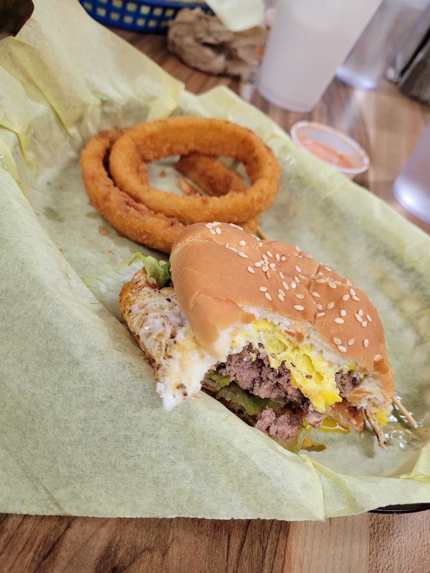 We went fishing on mirror lake and had heard of this place. We stopped in and the place was pretty full. We looked over the massive menu and finally placed our order for 1 philly cheese burger, 2 milk shakes, a lime soda, and a grilled cheese and ham.
