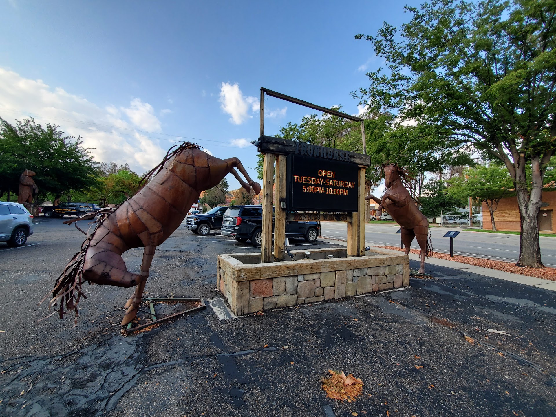 Ā Ā Ā Read moreGreat atmosphere and food was delicious! They had a sign on the door that they were short handed but worth the wait and I would agree. Decor was rustic western with fun touches like a real covered wagon you can pose on with fake horses to lead it. There was a whole western town front, fake jail, koi pond, giant whimsical chair, gift shop, outdoor and indoor dining. Inside, there were antler light fixtures, pictures of John Wayne, taxidermied raccoons playing poker, antique tools on the walls, and amusing signs like "don't squat with spurs on" or something like that. The cost of full adult meals was around $15-20 average with some dishes like brisket or variety platters going 24-30. Kids meals were much less but our kids have outgrown that stage so we all got burgers. They do however automatically add 18% gratuity for parties of 5 or more so keep that in mind if you have a larger family or go with a group.