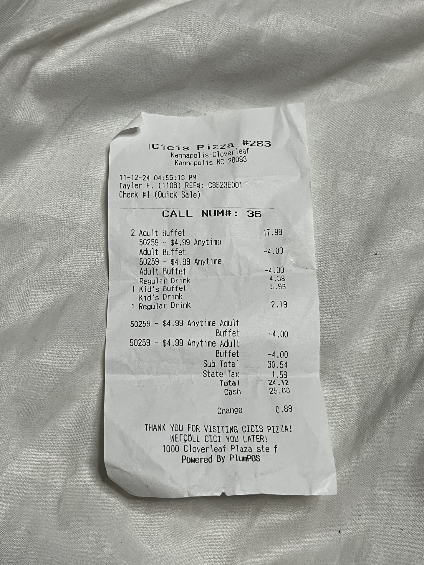 Our family of 6 came out to support Boger Elementary’s PTO Spirit Day and Night. I’ll be honest, I was low-key dreading it. I expected it to be packed, with limited seating, and a heavy dose of chaos. As we entered, I heard one of the managers say, WELCOME TO CICI’s!!!! I’ve lived in Cabarrus County for over 20 years now, so I had heard that unforgettable welcome many times in the past. I had not heard that signature welcome in forever. It wasn’t because I had not been to CiCi’s. It was because they had stopped saying it. When the manager shouted it out as we entered the line, boy, did it get me excited. It was at that moment that I looked to see where that joyous sound came from. It brought my eyes up from the floor and I started to take in the new changes to the restaurant. It has had such an amazing overhaul. There was ample seating! The new layout made a world of difference, especially on a night like tonight. It felt bigger, cleaner, friendlier, and tastier. It made me feel happy to be there to support. The pizza was hot and they kept it coming! They were staffed appropriately and showed great teamwork. The same manager that greeted guests checked on us in the buffet line to make sure that we found what we were looking for. I had to thank him for the WELCOME! He didn’t realize that he was the DJ and he had just played my favorite song! It made all the difference in our dining experience and turned my dread to joy. Based on all of these things, we will definitely be back soon. We all really enjoyed it. Pizza was pretty tasty and there was plenty of variety. We all left satisfied and I’m pretty excited for our next visit....
