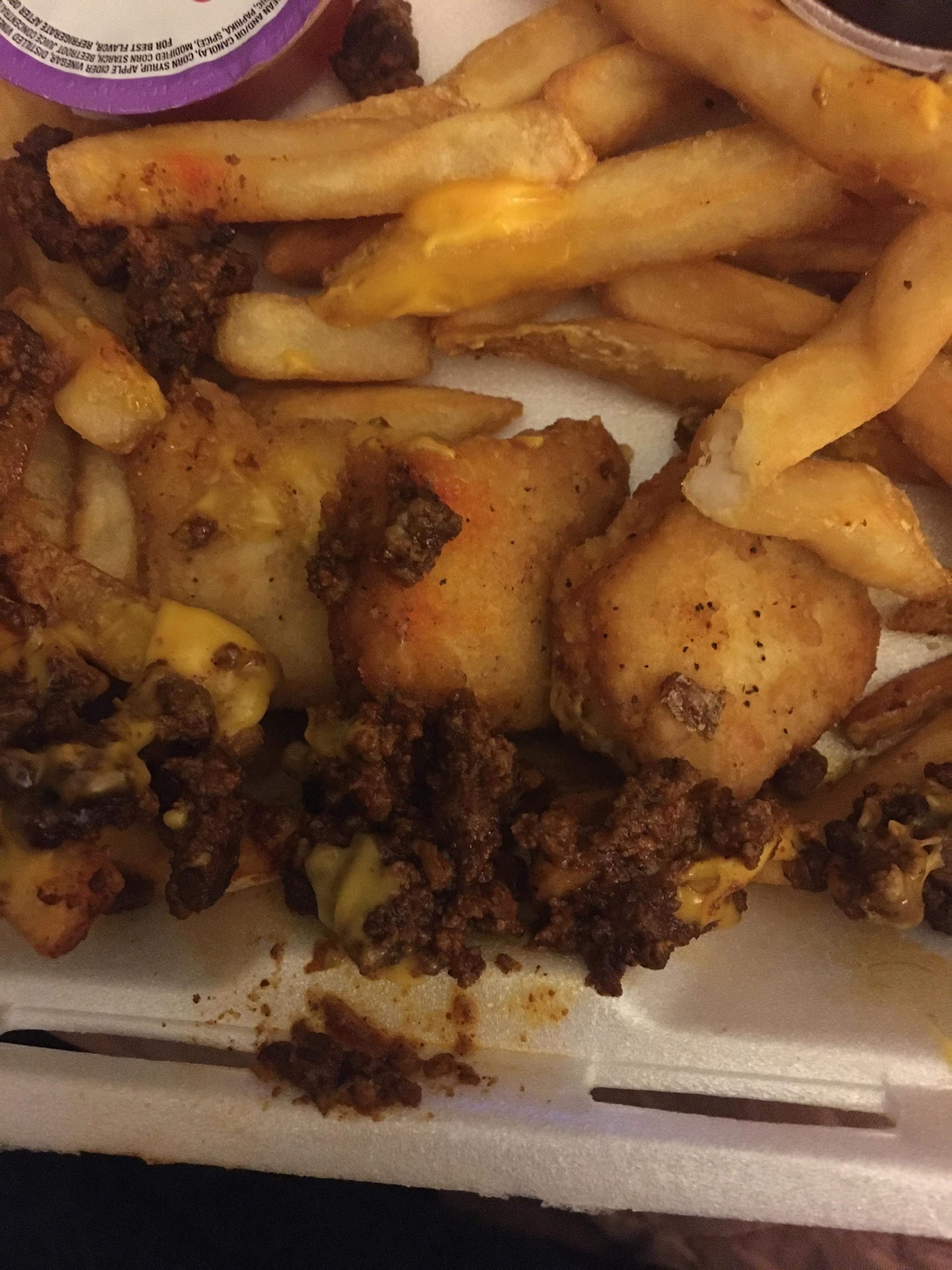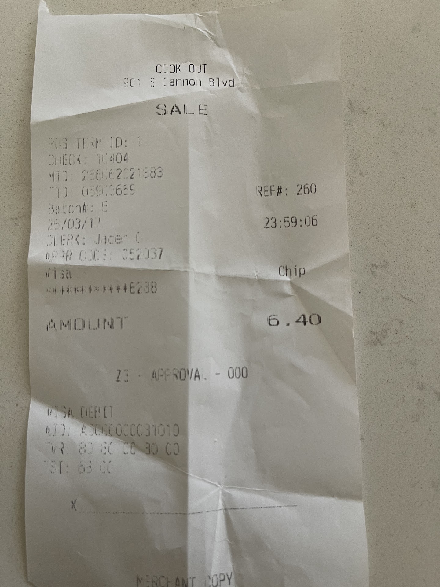 Read moreWe were traveling so of course we had no straws, silverware, condiments, etc. It was 12:23am and we pulled over during a multistate move. We went to Cookout on S Cannon in Kannapolis, NC where Jaden was our cashier name on our ticket. I ordered a tray with bbq sandwich with slaw on it with fries and onion rings and cheerwine. I asked for ketchup specifically 3 times just ordering that tray. I ordered my wife her tray with a reg chicken sandwich (where specifically stated lettuce, tomato, and Mayo) with white cheddar cheese bites and corn dog and sweet tea. Again asked for ketchup. We should have checked the bag but we were tired. Getting to our hotel only to find out we have NO straws, no napkins, no ketchup. Start opening our trays to see my bbq sammy has NO slaw. Onion rings were BROWN and hard they were so burnt. My wife opens her tray to see a corndog that is so burnt it resembles a charred piece of wood; opens her chicken sandwich where the piece of grilled chicken is so tiny it doesn't even cover half the bun! And that is all that is on there, no lettuce tomato or mayo. Again we were traveling so we...