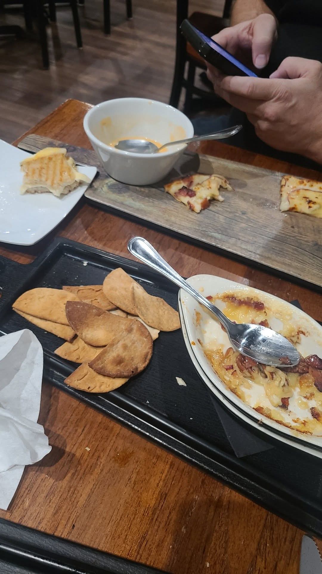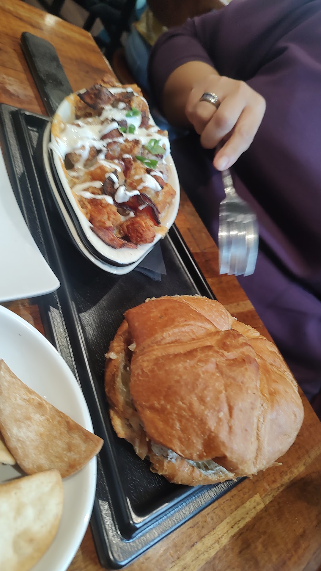 Read moreFirst time trying here. Took my wife for her birthday. Had heard nothing but great things about the food. Owner from Ohio. We're originally from Wisconsin. Thought Midwestern food, how could we go wrong. The good! Very hospitable. Greeted by owner at our table. He sent his wife out because he is the food guy and she is the wine expert. Many to choose from. She did very good and was very personable. I had the best blackberry wine I have ever had. The loaded tater tots. Best I have had in many years. Definitely a must try if you dine here. Atmosphere was great. Beautiful patio and nice little dining area. Being from Wisconsin, bonus they had the Brewers game on. We opted for the patio. Actually a nice little view over looking the side road off hwy 73. Now on to the bad. I chose the "no pasta lasagna" and my wife had the "baked salmon". The lasagna had a layer of burned cheese covered by a layer of freshly baked mozzarella. The mozzarella was great. However, the rest had the burnt flavor all the way through. The sauce wasn't the worst I've had, but definitely could have used something to sweeten up. Had the bitter taste of tomato paste. The garlic bread was actually really good. Great crisp, but yet soft center which is difficult to do for homemade. Overall, I would give that meal a 2 out of 5. My wife's salmon meal a different story. We'll start with the bland rice. Just plain white rice with nothing added. The asparagus was like it never cooked. My wife never leaves asparagus, but she ate 4 bites and said no. The baked salmon was so baked,it looked like it was overseared in a fry pan and was so dry it had to actually be cut to eat it. The roumalade sauce to my wife tasted like Dijon mustard. When the owner asked how our food was, my wife told him the salmon was way overcooked and the sauce had way too much Dijon mustard. His reply was it doesn't have any mustard and he walked away. Did not like the criticism at all. I do understand. I want to think everything coming out of my kitchen is top notch,but when it's not, I also want to take the time to learn why and improve on the mistakes. I was disappointed in the fact that he knew it was our first time there, my wife's birthday,and he didn't even show an ounce of care about her having a satisfying meal. Very disappointed actually. Also, we did end up sitting for about 20 minutes between finishing our appetizer and $25 wine flight before our waitress reappeared and asked if we were ready to order a drink and our dinner. Overall, not the worst place we've been, and we will definitely go back. We also give a 3 strike system and from what we have heard, the sandwiches here are to die for. Not a great experience this time for us. But if you are going to take your spouse out for a nice birthday evening, I would think it through as to where you choose. Overall not a bad deal for an appetizer, 2 bad main courses, a wine flight and 2 glasses of wine. Just under $130 with a 19%...