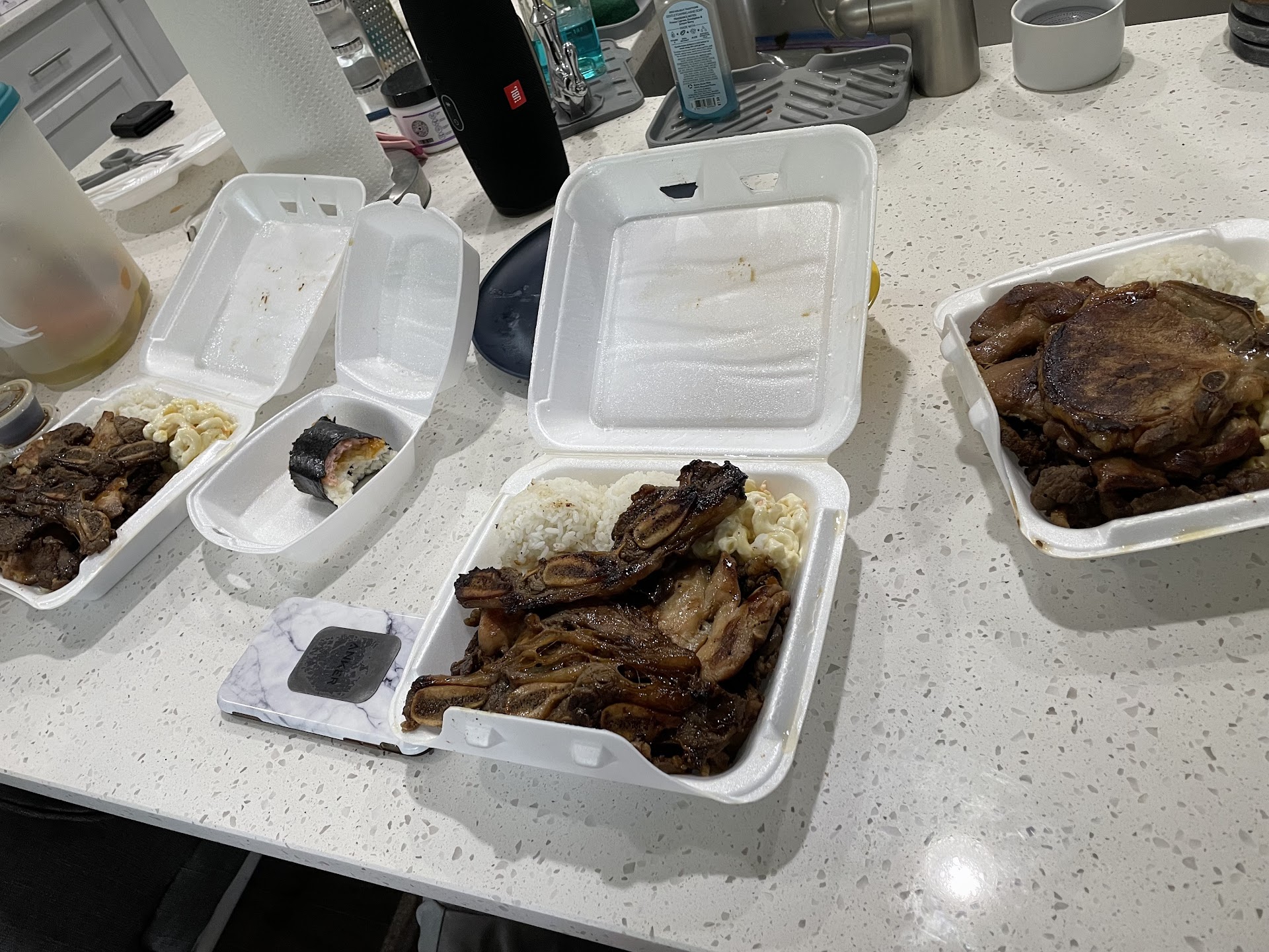 As for me, I had the Kalbi Beef plate. Absolutely delicious, chew slowly, if you've never had Flanken Ribs before, sometimes tiny bone shards come off the ribs. So understand this is natural and nothing against L&L that's just what happens when you make damn good Kalbi Flanken Ribs.. They are perfectly seasoned, Juicy, and perfectly grilled. I recommend meat scissors to separate the flags of beef, or just grab on to the ribs and sink your face into them.