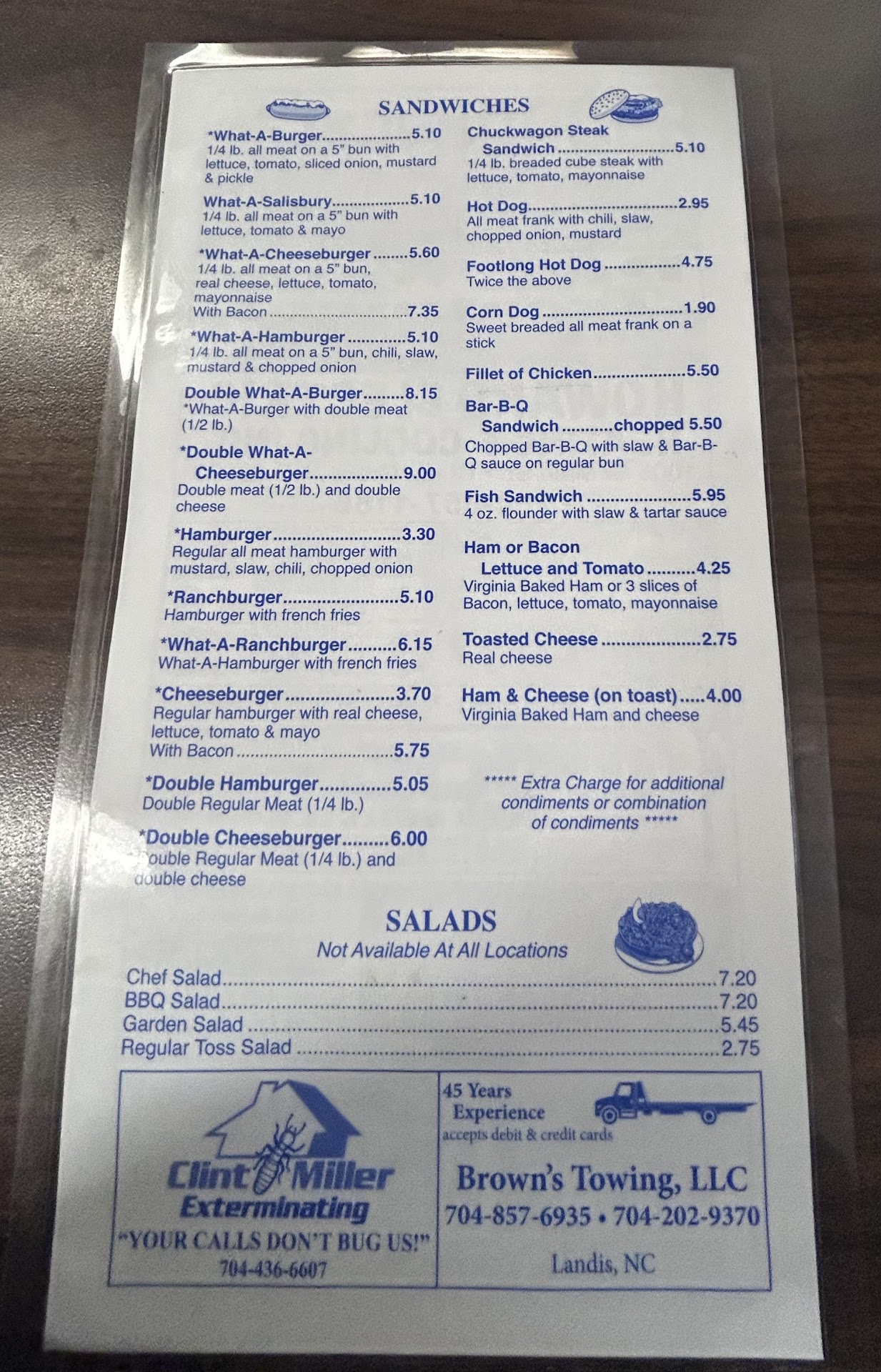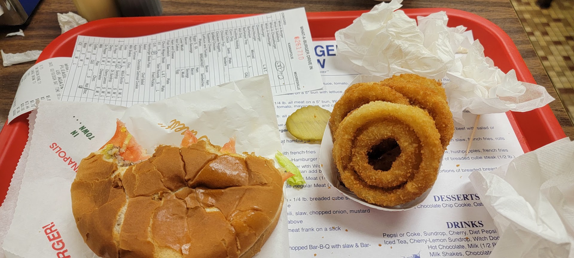Read moreOk. So this is not the same "Whataburger" from the American West. This What-A-burger is a favorite of the piedmont region of. North Carolina. Concord, Kannapolis, Mt Pleasant, Mooresville.... Drive in and order curb side and the car hop will bring it to you. Expect burgers and fries, tater sticks, cherry lemon Sundrop, and the famous Witch Doctor on the menu. What is a Witch Doctor you ask? It's a drink that begins with dill pickle slices on the bottom of a cup, followed by ice and a mixture of sodas including the local Sundrop brand. Sweet and sour combo. This is where it's at if you're a pickle lover! Don't forget that you can choose lettuce, tomato, mayo, OR mustard, chili, slaw, and onion on your burger. Try the ranch burger and add cheese. For kids you can expect to get a melty grill cheese sammy or plain hot dog. The WAB serves tasty crinkle fries that come in a little tray wrapped with your burger. Yum. Check it out. Should be on Diners, drive ins, and...