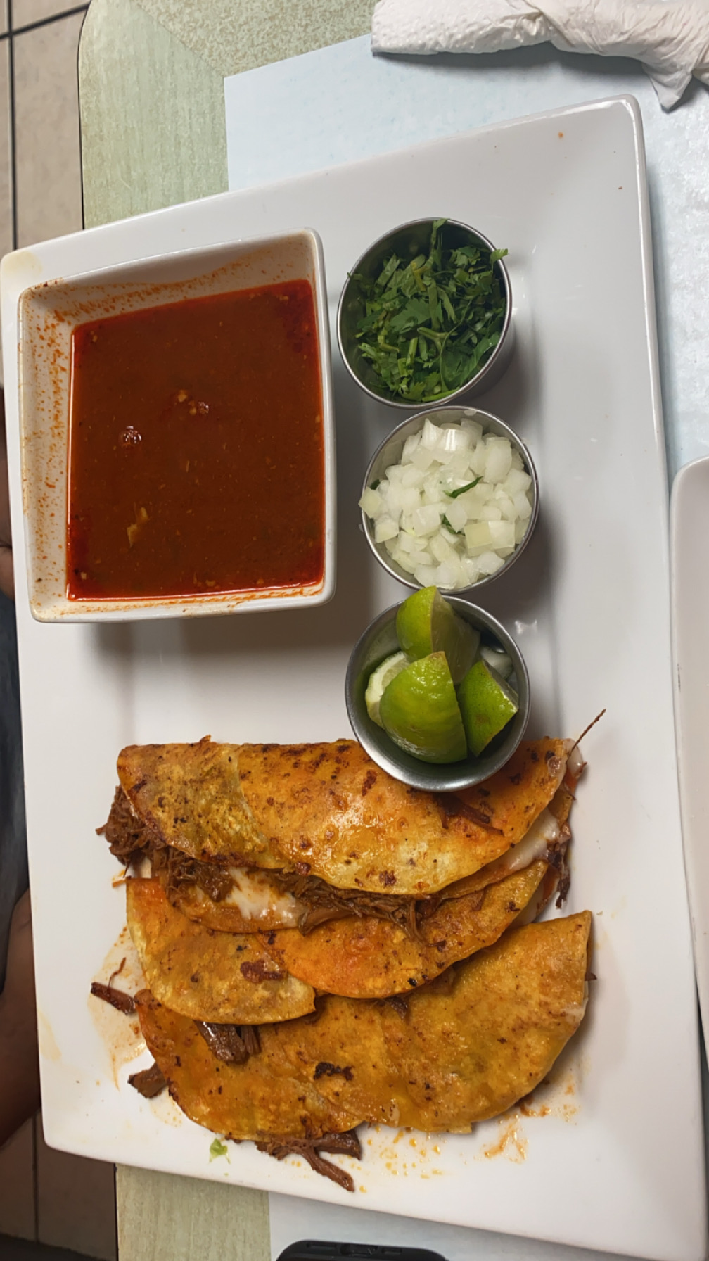 This place is a gem! Delicious authentic mexican food and the service was excellent. We got a order of quesabirria tacos, they did not disappoint. The green avocado salsa they have gives such an extra flavor that doesnt add spice but is welcomed. They do offer a more spicy salsa if thats what you like i didn't try that one. The asada tacos and machete are all great as well. We got a few of there aguas, horchata, pineapple and melon. The melon agua....OMG! I would be back for that alone!! We came in from out of town and wanted to try something different than our usual. We will be back on our next trip. I will be thinking about the agua de melon for a...