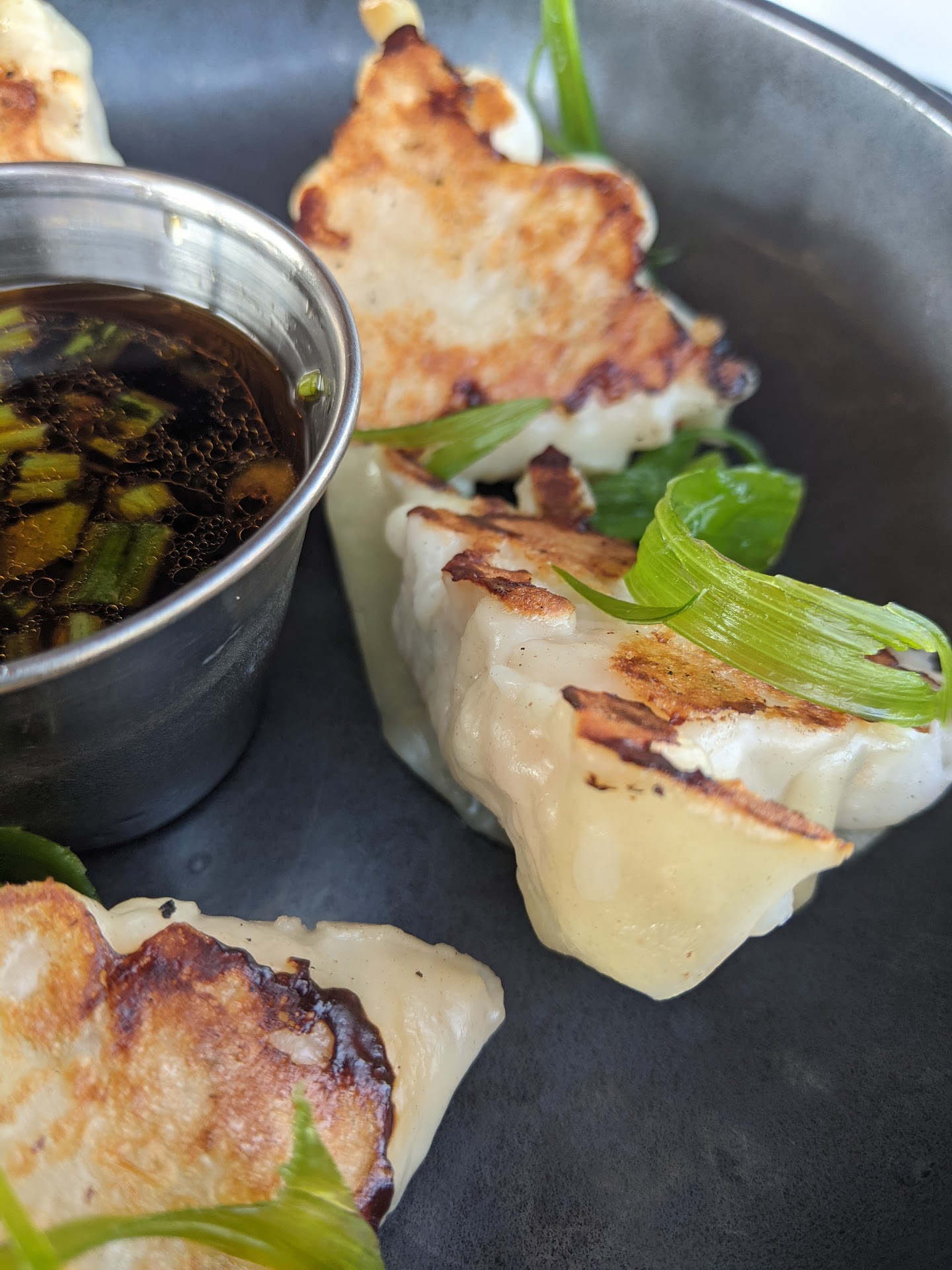 While the drinks were fantastic, we each tried a steamed Bao for the first time and I didn't super love mine. My boyfriend got the Togarashi Fried Chicken Bao and I got the King Mushroom Bao. The shell of these is extremely soft and each one is different. I didn't realize until after that mine had mayo on it so for round two I did not get mayo on there and it made it much better! We also got a couple different dipping sauces which gave them an even better flavor. However, even after the modifications and additions with the sauces I still found the mushroom to be a bit chewier than my preference. The other Bao styles may be a bit tastier for meat eaters but in either case I do recommend asking for their spicy chili oil or sweet glaze to tip these in and you are set!