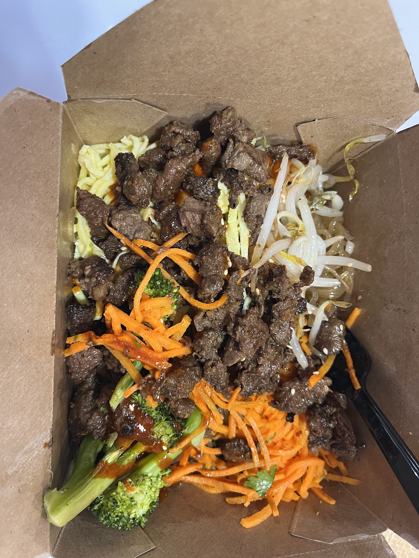 The food is healthy and delicious but.... THE CUSTOMER SERVICE IS HORRIFIC! The food service line is fully disorganized, and the employees rude! Your employees prioritized making to-go orders instead of helping the people backed up standing in front of them! You have three stations to prepare the food and your employees kept mixing up my bowl with my daughter's bowl, which is very hard to do because your prep line is very very short. After we initially had our Rice and noodles and salad placed in our bowls...our food just sat up on the counter for a long time untill the person who adds the vegetables was available because they were doing to-go orders, so we just had to sit there and watch them make to go orders with all these people standing behind us. And your employees were in a bad mood because of this and took it out on their customers with bad attitudes! In the future we will visit the Bibibop at Oak Park Mall and drive that far because the food is really wonderful, it matches our gluten-free diet! We suggest you develop a better system to serve the customers in your store, you need a designated carryout person just to work on that area. My daughter works at a successful restaurant in town with a food line/cafeteria style system, and she said it was painful to watch...