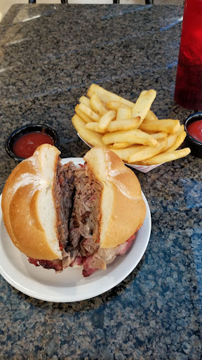 I ordered a two meat sandwich with beans and a side rib. The beef was moist and tender, but there was no smoke flavor. The pork was grey (I thought it was the beef initially) and it also had no smoke ring or rub flavor in it. The rib was solid, tender and a lot of meat on it, but again, not much smoke flavor and no rub. The beans tasted good, but they tasted like they had come from a can and had some spices and beef added. I tried to doctor the meat with the sauce, but the sauce had no flavor either, tasted like runny ketchup.