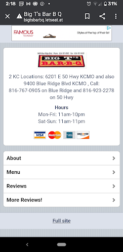 Place is dimly lit, dirty & a dive; not a good dive. All things considered, not a good $30 spent. With so many great BBQ places in KC (LC's across the street: Better food & friendly people), why settle for something...