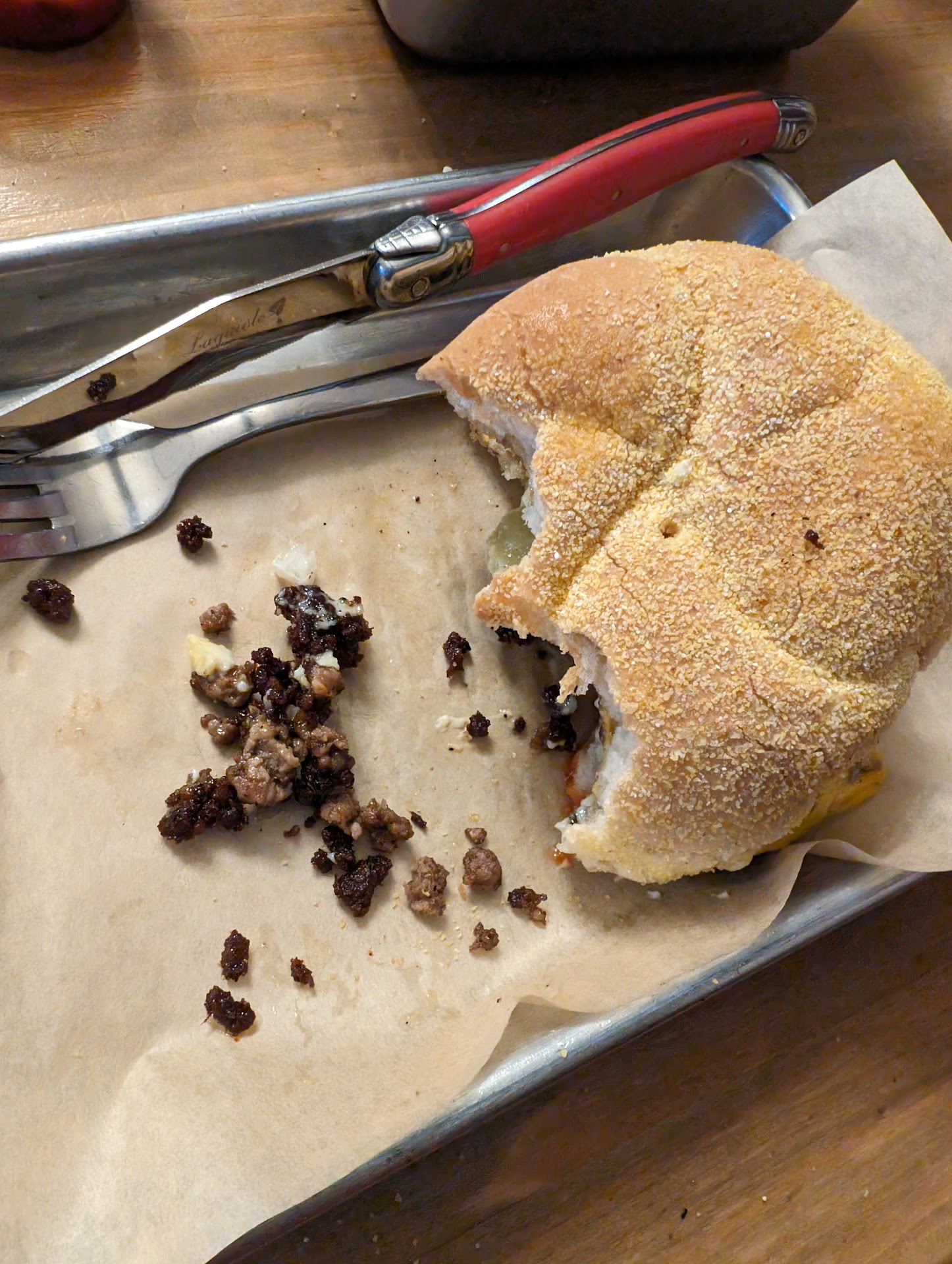 Unfortunately, that same enthusiasm bleeds into the rest of the menu, especially their “patent pending” KC Crunch burger. Billed as a hybrid between a smash burger and a loose meat sandwich, it’s a clever idea with a decent payoff… until gravity steps in. The patty, if you can even call it that, crumbles apart with every bite, leaving you chasing stray beef around your plate with a fork. It’s flavorful and the seared edges are, indeed, satisfyingly crispy. But the structural failure turns what could be a great burger into a high-effort exercise in sandwich management. Oh, and cheese is required, not optional, which feels less like a flavor choice and more like a desperate glue strategy.