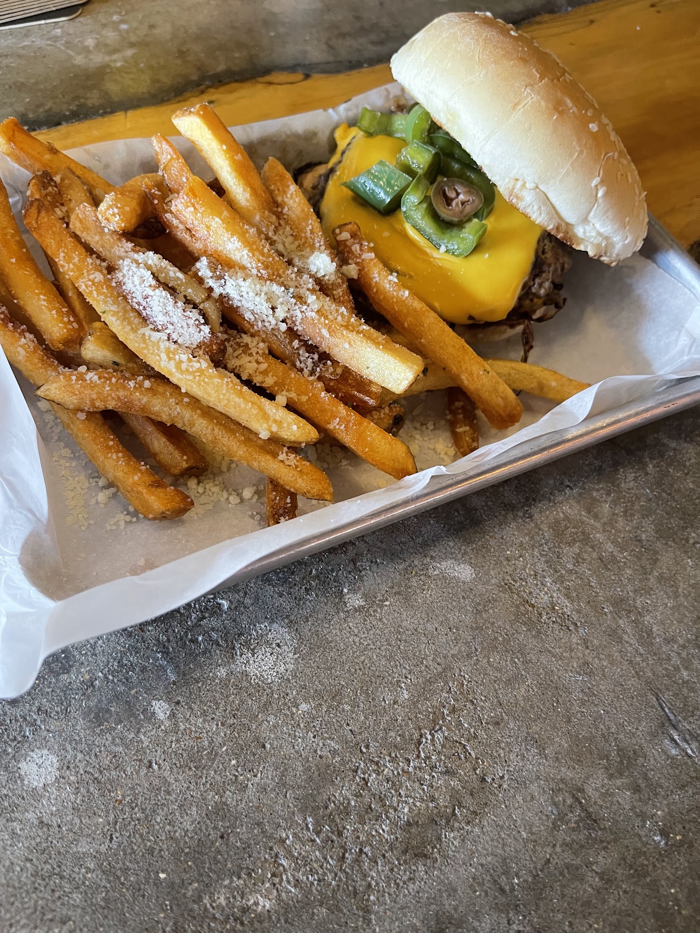 Read moreWhen I first pulled up and looked at the building, I knew I was in for a treat. I walked in the outdoor area and was told to go left inside of the door to the bar. As soon as I opened the door, I noticed all of the owl decorations. Very rustic inside but very very impressive. The bartender was more than helpful and had a few laughs together. I had a wheat beer on tap, and I ordered a smash burger with only adding grilled jalapeños to the burger. I had the option of regular fries or Parmesan fries so, of course, why not choose Parmesan? I found myself amazed with all of the different decoration from everything to look at on the ceiling to how the bar top was constructed out of wood and concrete countertop, as my food got there, of course I had to take a picture and then dive in. When I say, this is the best burger that I’ve ever had, it’s not just the dispensary down the street hyping it up. The most amazing crispy Parmesan fries I’ve ever had. The burger was hands-down, the best burger. The bun was toasted to perfection. I even found myself not wanting to use ketchup to take away from the originality of the fries and no they didn’t pay me to write this. Five on atmosphere, five on food, five on service and five more altogether just because I am so wowed!! Plus...