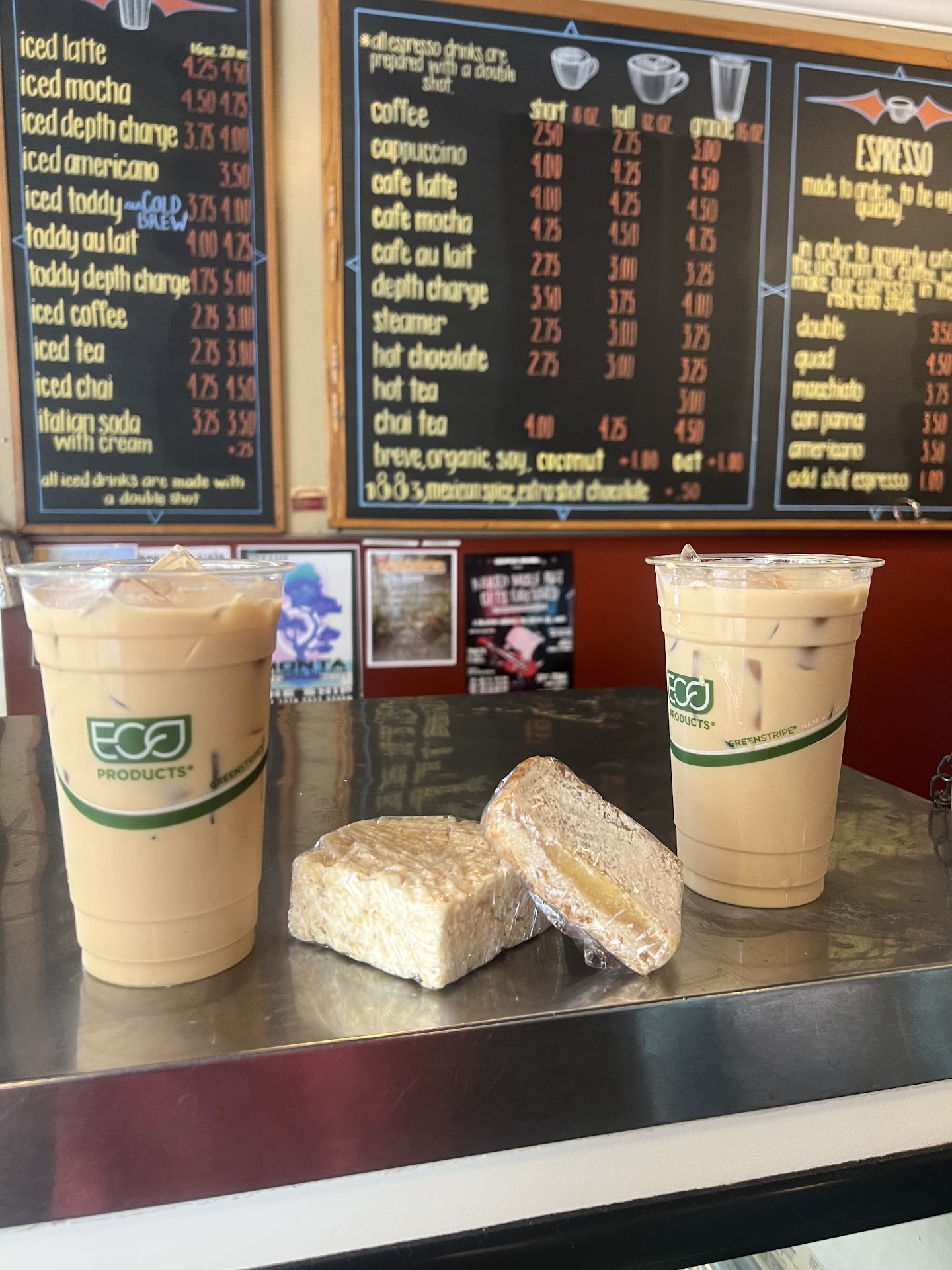 Considering it's an independently owned location and it's a coffee cafe, I think the prices are fairly realistic. You're looking at similar prices to any chain, but the taste is far better. They do sell some "brewing tools" if you're thinking about starting to do cold-brew or french press at home. On top of that, they sell their beans/grinded beans for your personal use. Price-wise for these things are competitive or on-par with most retail locations.
