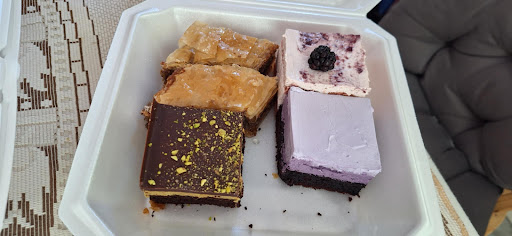 Ā Ā Ā Read moreThis place is amazing. Seriously, stop reading and go! We had to pick several because they all looked so amazing, and they ARE so amazing. The Dubai Chocolate cake was insane. It was like eating a chocolate bar. The purple cake is an Ube cake, which was delicious and very subtle and not too sweet. The baklava was very good, I think if I warmed it up it would really enhance the flavor. The best thing we got was the blackberry tiramisu. Which it didn't have coffee, but this slightly sweet juice all throughout it. It was like tasting a blackberry cloud. So good and subtle and delicious. Everyone follow them on Facebook for updates and what they make. There are soo many good choices. The owners are extremely kind and this place is really a special gem. GO VISIT!! (It's not far at all from ReRoll Tavern/North KC...