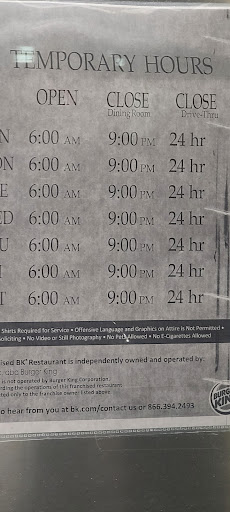 Read moreNormally we had a great experience with very friendly staff here, always 5 stars. But not last night. We went at 11:30pm on May 5th 2022pm. We ordered ahead through the app and had already paid. We stop at the drive thru menu and wait a couple minutes and no one responds. We see 2 cars un front of us waiting at the windows. Eventually we pull up behind those two cars, wondering if they're closed or not. By now it's been at least 5 minutes. We pulled around again and those 2 cars were gone suddenly. We went to the window and if we hadn't paid in advance for food we would have been long gone. We look in and no one js to be seen, and when we drove around we didn't see anyone in the front or dining area either. Finally a woman comes to the window and says sassily "we are only doing doordash and uber eats now." I replied that we had paid ahesd on the app, and that shows up the same as a doordash order. She is mad she has to work I guess, and replies rudely "Well, next time stop at the drive thru menu and wait there." I replied that we DID do that and no one answered. She doesn't give up! She starts saying how she told the manager or whoever else it was that she had to go change her headset battery. From the time it took you think she went out to get a whole new headset lol. Don't try to chastise me about something when you were the one not ready to take orders. The jr. Whopper we got didn't have the onion it was supposed to...