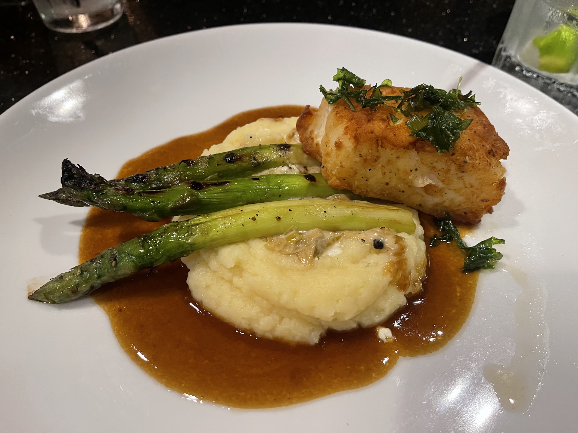 The Chilean sea bass was delicious and wonderfully prepared. It was exactly the texture and taste that you expect. I was thrilled with it. It was served with the above mentioned mashed potatoes. On the plus side, the texture of the potatoes was amazing. On the downside, I couldn't eat them because they tasted like medicine.
