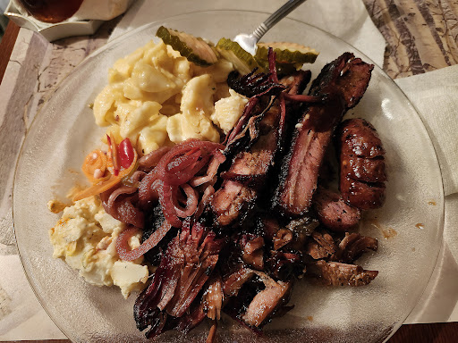 Update 04-19-2024: The food truck mentality comment was because it's like ordering from a food truck window instead of a barbecue restaurant. You have a ton of space why don't you put the cash register at the front take the order move the people around to the end of the bar and fill the bar up with people waiting with their trays. While your meat cutter cuts and weighs if necessary your sides guy can make his rounds, as the meat hits the platter your quality control guy can come around I think that was Chef Jay I don't know. But he should not be wiping the trays down and cleaning them and then with the same gloves touching people's food as he did that day, your customer can go ahead and have his drink ready and perhaps a table selected. And then start up selling the desert. I realize you sell out early so you may not care, but I think if you will notice this is how must all other barbecue restaurants do it. Your brisket was excellent even with no sauce. And I ate the ribs dry and they were excellent except the short rib I got on the and had no meat on it at all so I really only got two bones. Your smoker is big enough you should be able to make it from lunch till dinner just streamline a little.