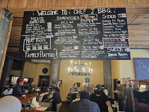 Ā Ā Ā Read moreChef J is a Q startup I first spotted in Google Maps. And there's a good reason it opens at 11:30 a.m. Thurs. through Sat., noon on Sun., and they close down at 4 p.m., Because They Sell Out. I was looking for new barbeque "blood," if you will, new hands in the game that I could try during my first multi-day stay in my hometown since 2011. Chef J lived up to other Googlers' rave reviews, with underlined emphasis. The array of smoked meats is without a weak option. The brisket shows a perfect smoke ring, it's soft and moist and graced by a delectable rub. The jalapeno-chese sausage is juicy and flavorful, I think there are some embedded herbs involved. The ribs are spares, but selected to assure there's a moderate fat layer on one side, so they don't dry out in the smoker. They serve meat by the pound, and offer sandwiches and some excellent sides. I had chipotle slaw, which was terrific, spicy and tangy, and mac & cheese, which was the only thing that missed the satisfaction mark, it was too mild a white cheese treatment. Next time I'll try the pit beans and the bacon & blue cheese potato salad. They give you all three of their homemade sauce varieties: the K.C. style red, a Carolina vinegar and a mustard-based, which were all awesome. I was due to hit the road in the truck, but I hit ChefJ as it opened up on a Chiefs football Sunday, with 6 hours to drive. They carefully and snugly wrapped everything up, but I had to open up one corner of the foil tray and free a lone rib before resealing it and driving. The smell and the taste made me want to grab a table space in their high-ceilinged dining room and eat half a rack of the two full slabs I bought, and damn my road schedule. (I heard the space used to be a regional hub for John Deere?) This neighborhood in the long-unused West Bottoms district is home to antiques stores and a coffee shop with a cute black lab mix, the store dog. All about five blocks from the state line.