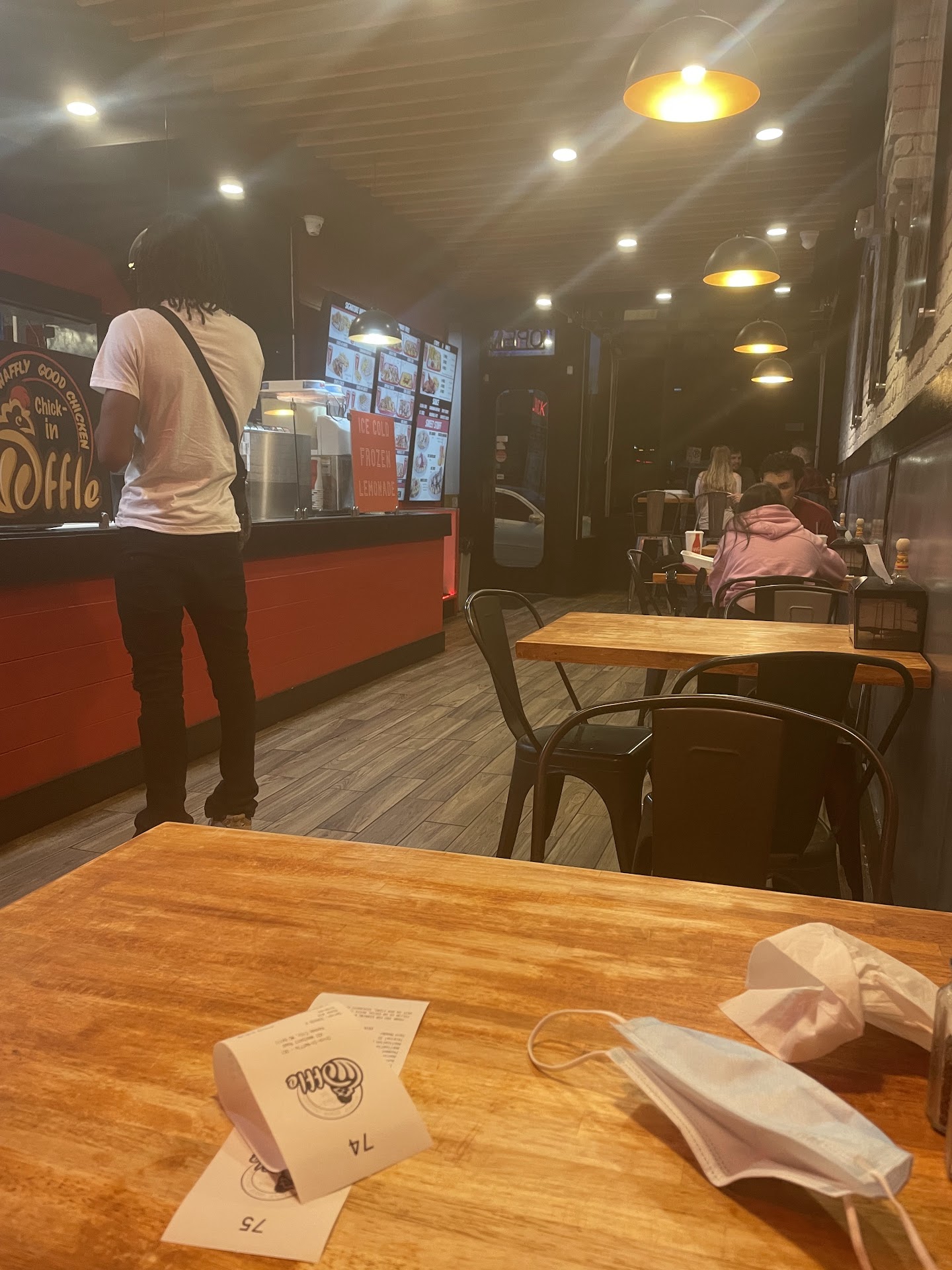 Read moreWe were craving comfort food and found this gem. Cozy and quiet setting. Outstanding service! The food is 🤤. We ordered Chick-IN Maple, Fries with Cheese sauce, Wings (Asian Chili) and fries, and a waffle bite for desert. Chick-IN Maple came with a BUBBLE WAFFLE! Never had anything like it, so light and fluffy, and melt in your mouth. The chicken was cooked to perfection with just the right amount of crunch. When paired together with the syrup it was delightful 🤤. The cheese fries were, as she put it “cheese soup with fries”which means outstanding. Wings were so crispy, sweet, and flavorful! Fries were so spot on with texture. And the desert! A totally different waffle. Dense, crunchy , dusted with cinnamon, sugar, and powdered sugar 🤤. We could’ve eaten a half dozen but we’d had to be wheeled out. We will return very soon with more friends. More entrees to experience. But the desert menu. There is a churro waffle! And many others. This place is legit and a must try for comfort...