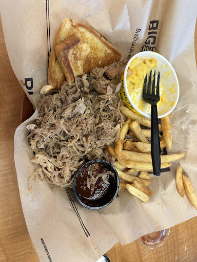 My meal was pretty good ordered the 2 meat meal - I had the chicken , brisket, green beans, Asiago cream spinach. I didn’t eat at the restaurant, it was delivered by Door Dash. I expected larger portions but the food was hot. I would have given them 5 stars however I asked for the pickle and onion side add ons to be placed on the side and they were not. I also ordered a corn muffin but received a call and was advised they were out of them (at 219pm on a Sunday). The caller advised me that a customer the day before ordered 24. I mean I make corn bread muffins at home and it doesn’t take that long🤷🏽♀️. Anyway they offered a dinner roll or Texas toast substitution however I don’t eat either of those. I then asked for a bag of corn chips (I wanted these as a side anyway but could only chose 2) and initially she said “you want to add this on for $1” (🤔there was a brief awkward silence on my end wondering why she wanted to charge me for these) then she said “never mind I’ll throw them in”. Everything tasted good the green beans were spicy but I like spicy so that’s was fine but if you don’t like spicy don’t order the green beans. It worked out because at the I was no...