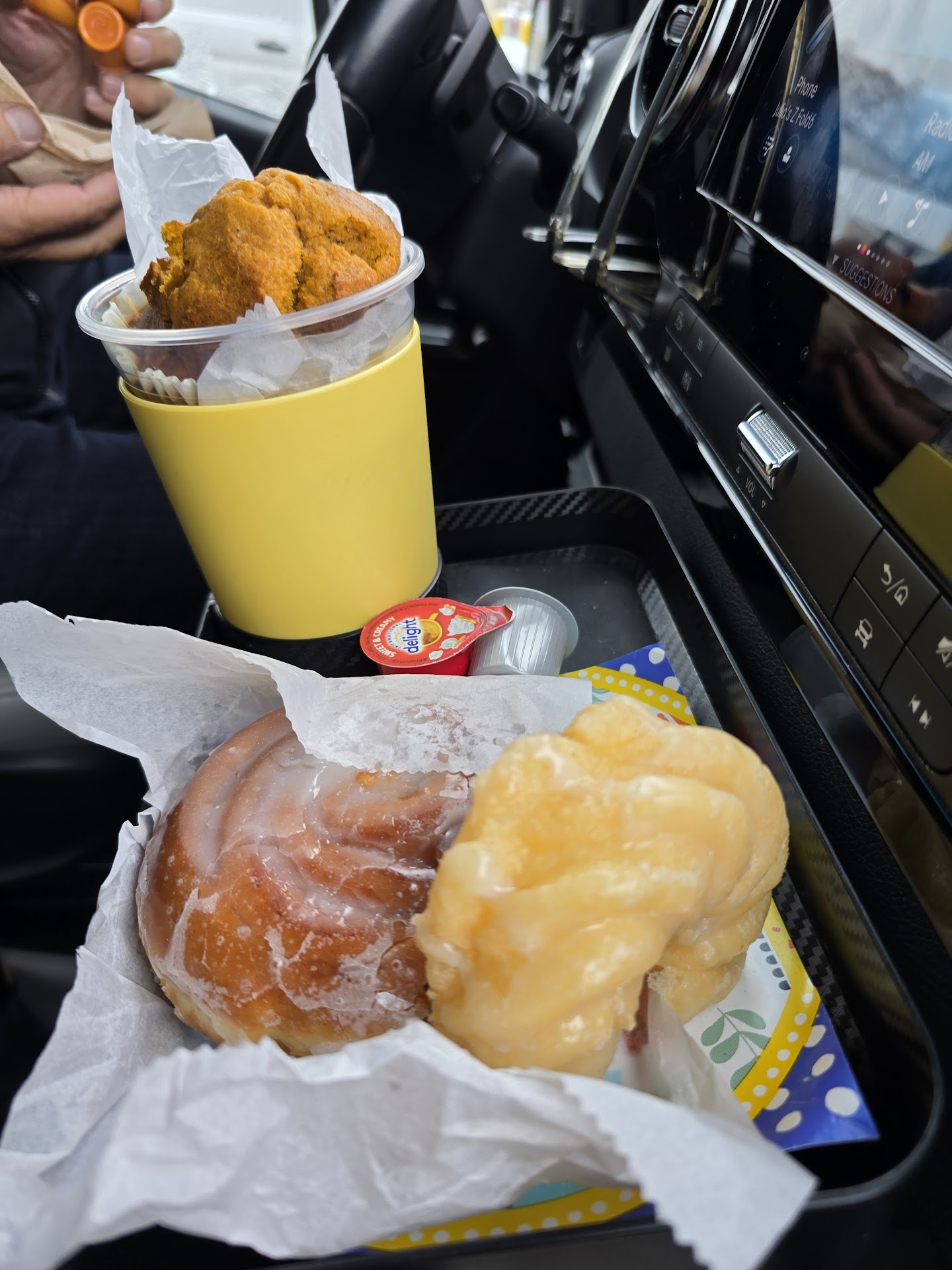 This is a little misleading as it isn't an actual Dunkin donuts... Pilot brews their coffee as part of the self serve coffee bar and a few of their donuts are available to purchase as well.. also self serve. Personally I was a little disappointed because I typically have them add a shot of espresso to my dark roast which I had planned to do. As far as the donuts.. they had the best sellers available plus one seasonal but only a fraction of the selection you'd...