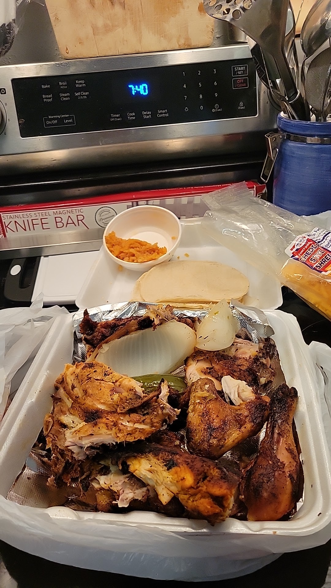 Every Tuesday we go. You buy a whole chicken & get another 1/2 of 1 FREE! Who doesn't like FREE?! Especially when the food is delicious 😋! Fresh, cooked right in front of u & comes w/all the fixins'needed 4 dindin.... Tortillas(hot), arroz, frijoles charros & grilled onions. Oh yeah grilled jalapeños & salsa too! U can't beat the prices either. All this only cost $13 or $14 can't remember exactly cuz we always buy at least 2 then you get a WHOLE ONE FREE! ➕ we buy xtra rice cuz it's so good! Only downfall if I HAD 2 pick 1 would be that it doesn't come w/regular...