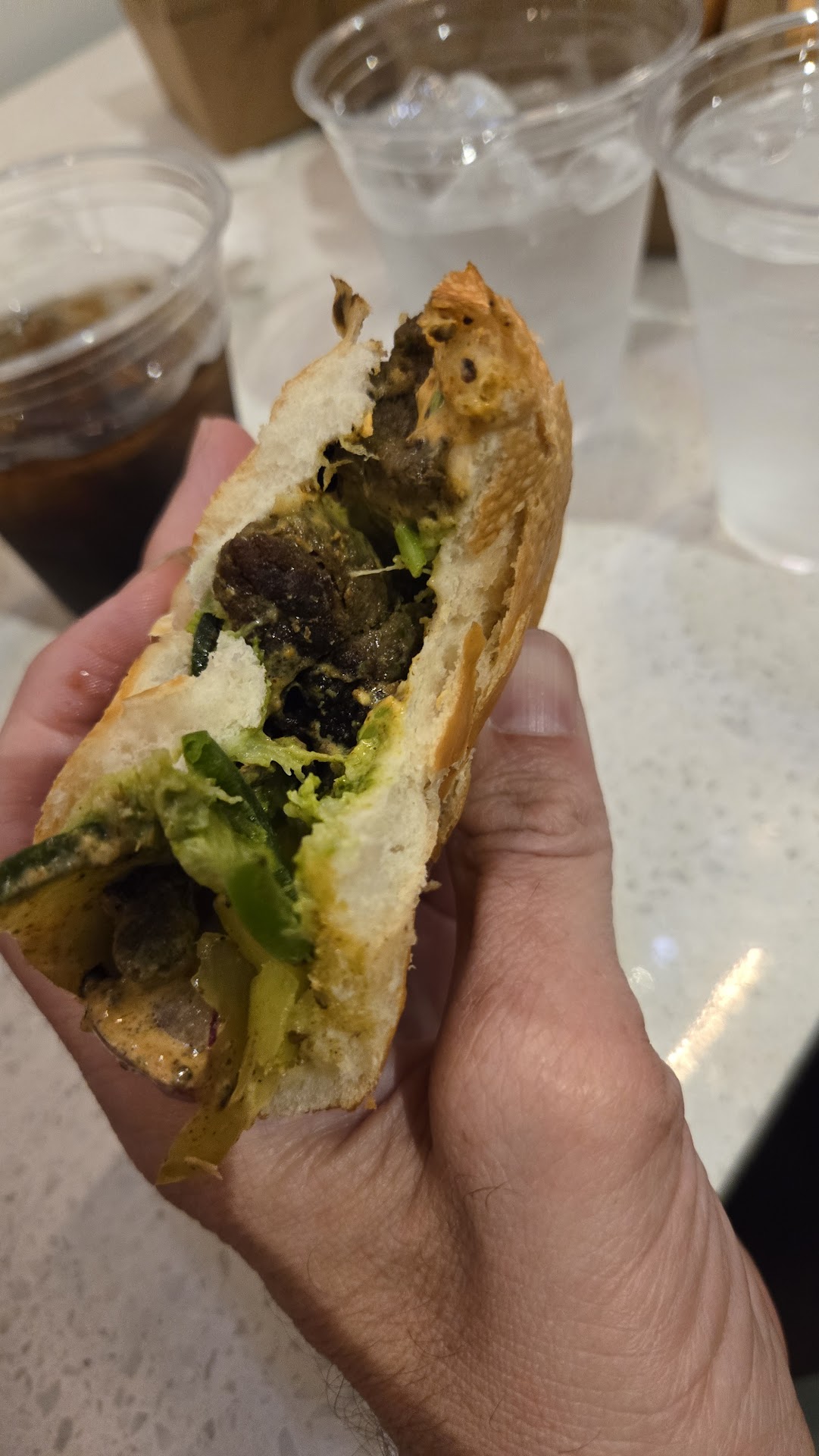 I had my eye on the Butter Chicken, but decided to ask the guy working the counter what his favorite was. Without hesitation, he recommended the Bahn Mi with rice, so I went for it — and of course, added a side of naan because… how do you not order fresh warm naan? 🤤