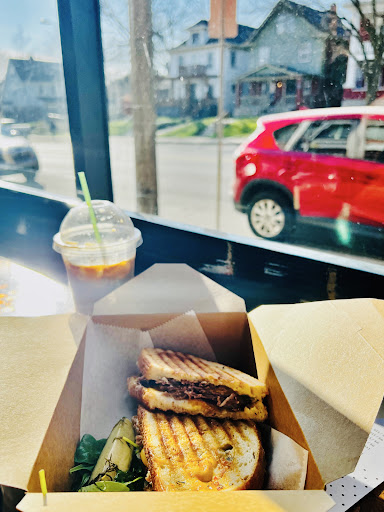 I'm instantly greeted by the owner who is generous, warm, and begins making recommendations before I even have to ask for them. The selections are quaint and concise ranging from paninis to smoothies and teas. I found myself ordering the San Francisco Melt & an iced lavender coffee (a combination I customized from their decent selection of syrups).