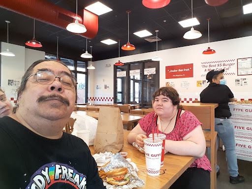 Read moreThis was my first time going to five guys my friend recommended it to me. I finally went to this location And it definitely felt like the people that work there didn't want to be there and I get it no judgment. I was just really excited to try it but by the time I walked out with my food it felt kind of like I had just been played. (Keep in mind this could all just be in my head thus the 2 stars instead of one). Reason being if I'm finally gonna spend 20$ for a burger I want it to feel like I'm not doing a disservice by being there. Anyway I get home and there is literally just cheese and burger with no other toppings and the bun is soggy. The fries were also sort of limp and wet . This may be my first public 2 star review. The crazy part is, I may want to try it again because you can't judge anything after just one try. I'm eating my cheese and burger right now and it...