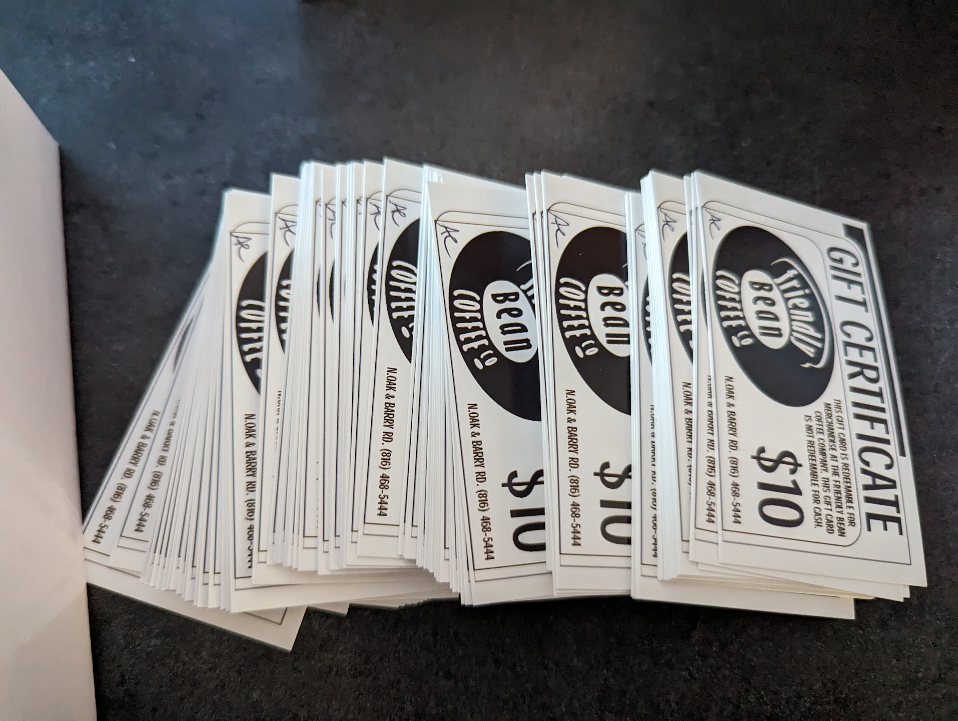 Read moreI cannot share what their drinks or food is like, but I can say that the workers and the manager there were so kind! My fellow high school teachers and I were on a scavenger hunt during a professional development. We needed to trade a paper clip for other "better" items. We went to several businesses, but the last place we went was here at Friendly Bean Coffee. The employees working at the time called their manager to see what they could give us. I thought maybe we could get a few coupons to bring back to our staff. However, the manager told the employee to give us 100 $10 coupons to share with our staff!!!! I could not believe how generous they were. I am so happy to see a business willing to support educators because the places we went before this were unwilling to give us more than one coupon worth $10 alone. This business clearly cares about us and our community, and I will definitely be spreading the word that people need to be taking their business here! Thank you for caring and showing support!