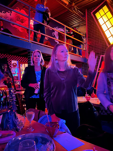 The dilapidated Funky Town has a strict dress code, you can only get in with a reservation, and a $15 cover. Itâs a themed club. Itâs disco, funk, hippie. Having kind of an alarming number of outfits that fit the theme, I dressed up, caffeinated, and braced myself for the horror that sober socialization often is. I hate loud places and trying to have shouting conversations with people who are so drunk they wonât even notice if I walk away mid-sentence. So I pasted on a smile and reminded myself that the night was about a celebration of an excellent human and not about me and my angst, discomfort, judginess, and cynicism.